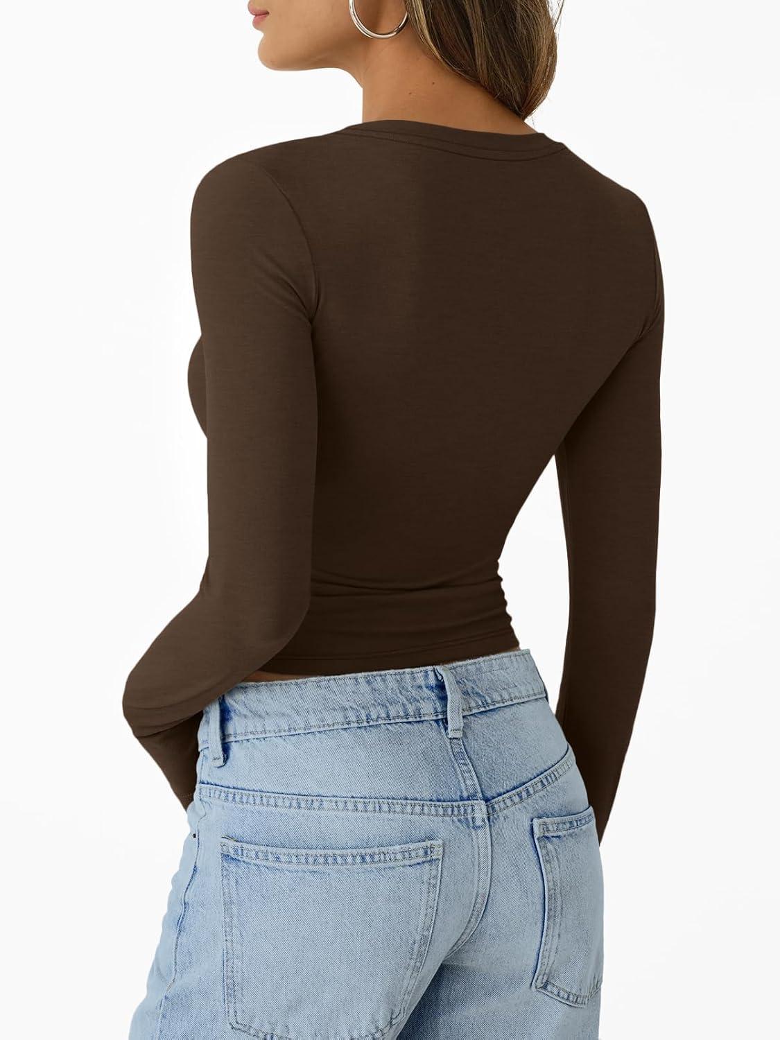 imageTrendy Queen Womens Modal Long Sleeve TShirts Basic Crop Tops 2025 Fall Fashion Outfits Going Out Winter ClothesBrown