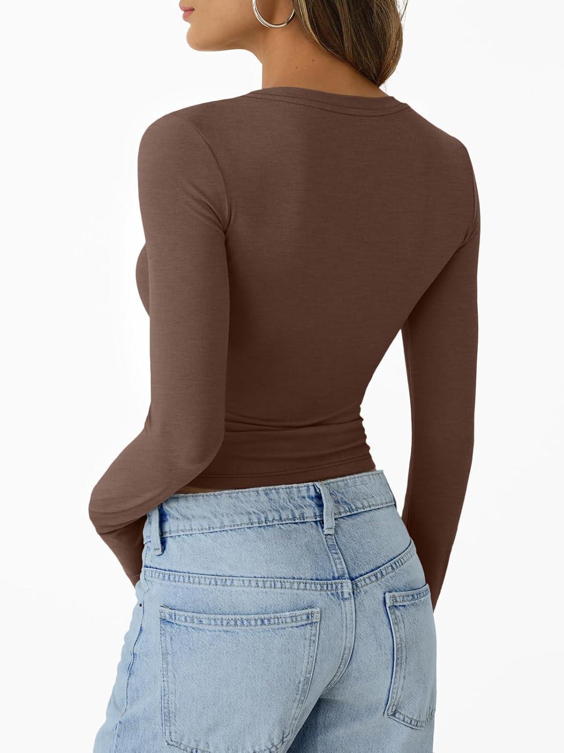imageTrendy Queen Womens Modal Long Sleeve TShirts Basic Crop Tops 2025 Fall Fashion Outfits Going Out Winter ClothesCocoa