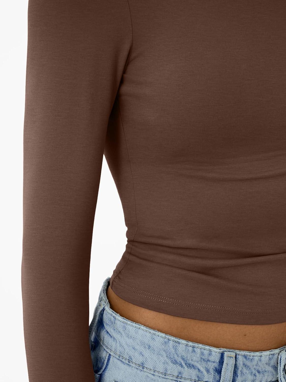 Trendy Queen Womens Modal Long Sleeve T-Shirts Basic Crop Tops 2025 Fall Fashion Outfits Going Out Winter Clothes(Cocoa)
