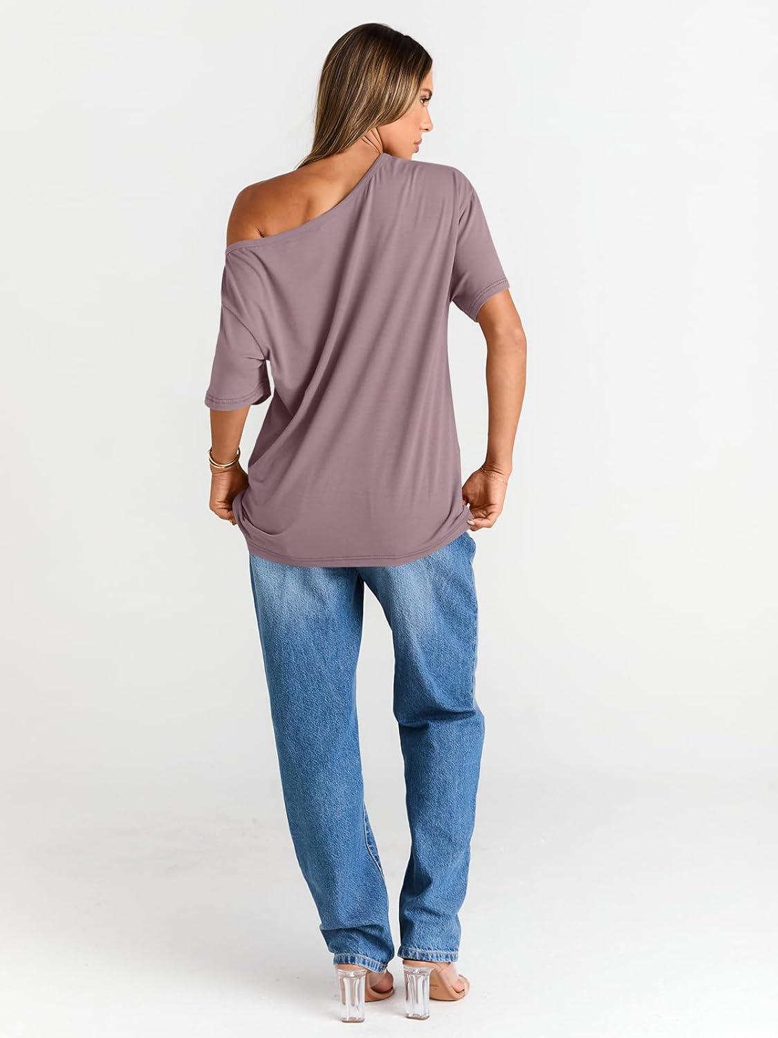 imageTrendy Queen Womens Off The Shoulder Tops Oversized TShirts Short Sleeve Tees Summer 2026 Casual Spring Fashion ClothesDarkpink