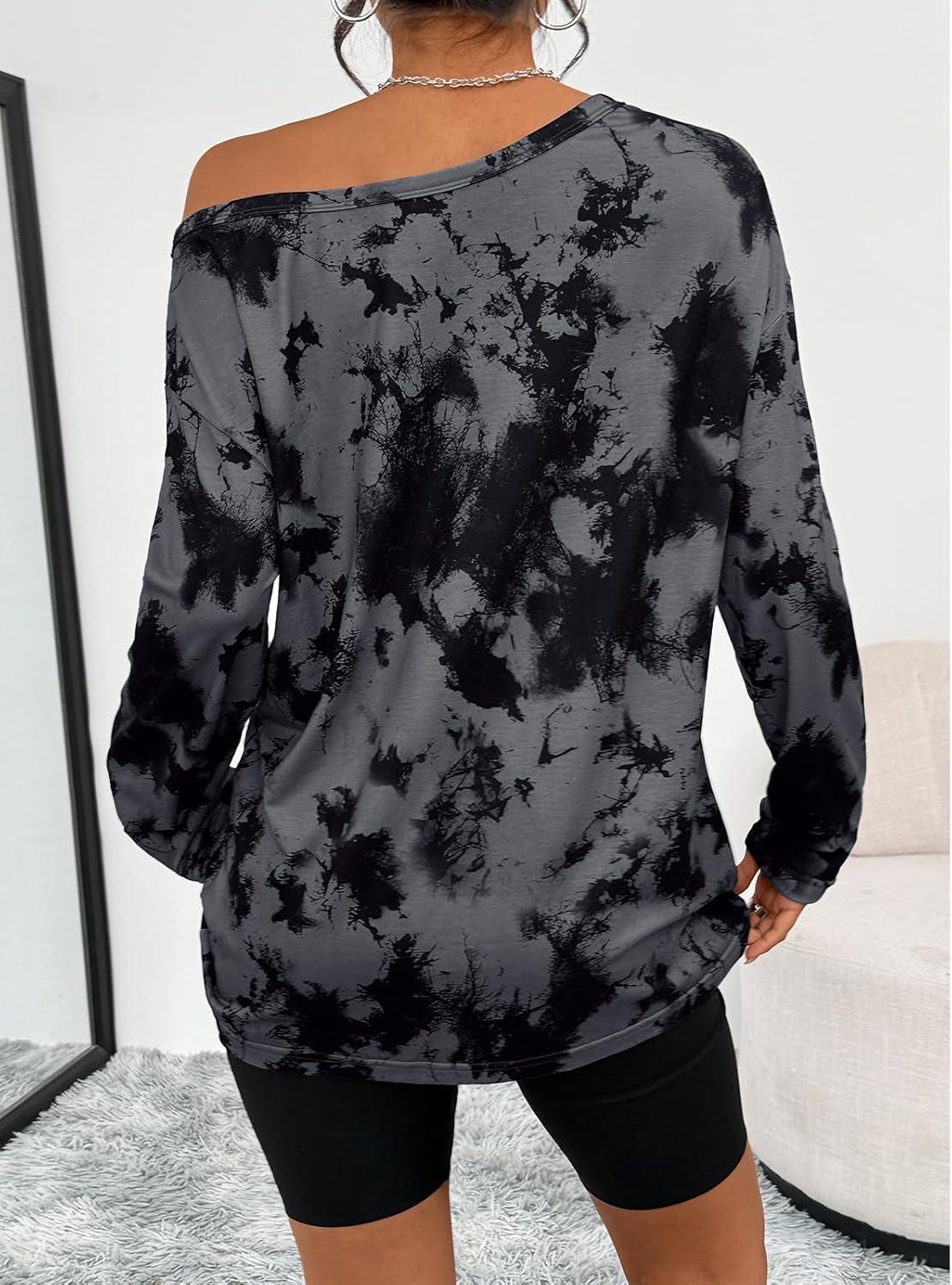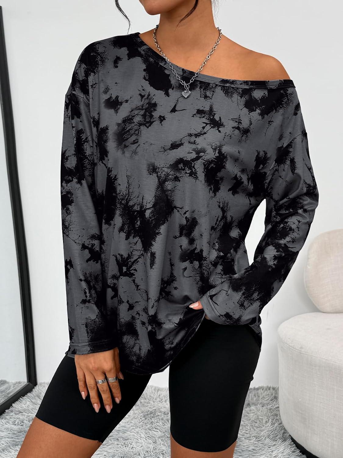 Trendy Queen Womens Off The Shoulder Tops Oversized Tshirts Long Sleeve 2026 Casual Basic Tees(Printed Grey)