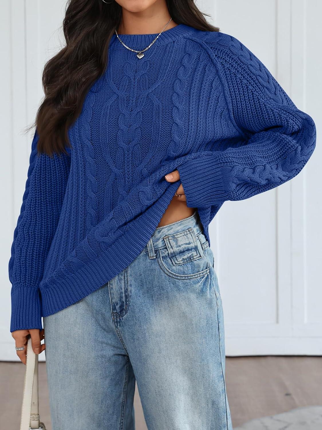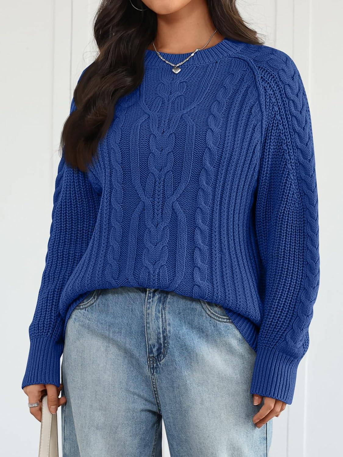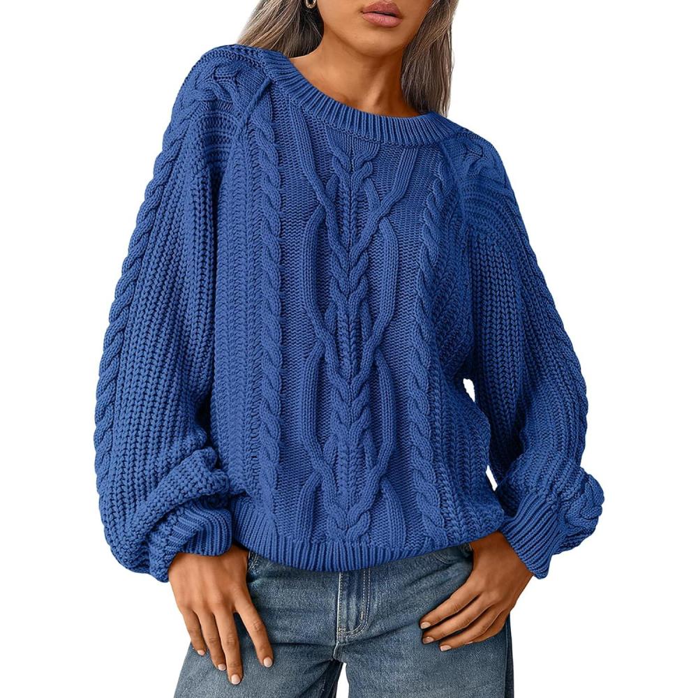 Trendy Queen Women's Oversized Cable Knit Crewneck Fall Pullover Sweaters(Blue)