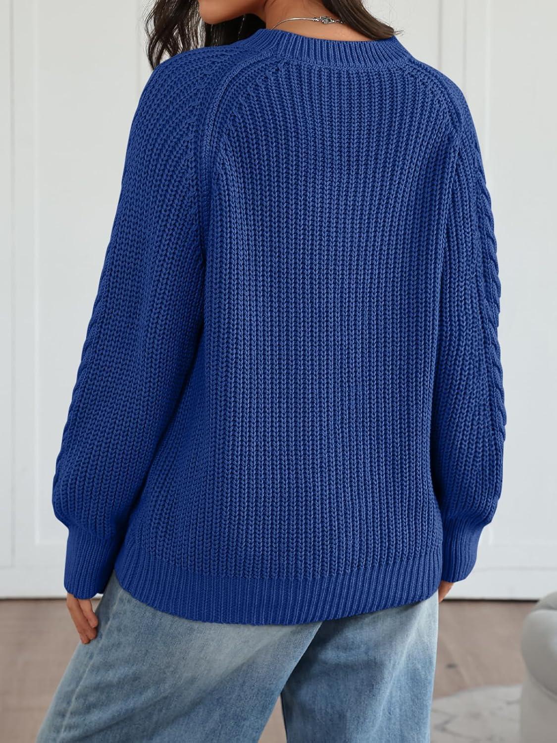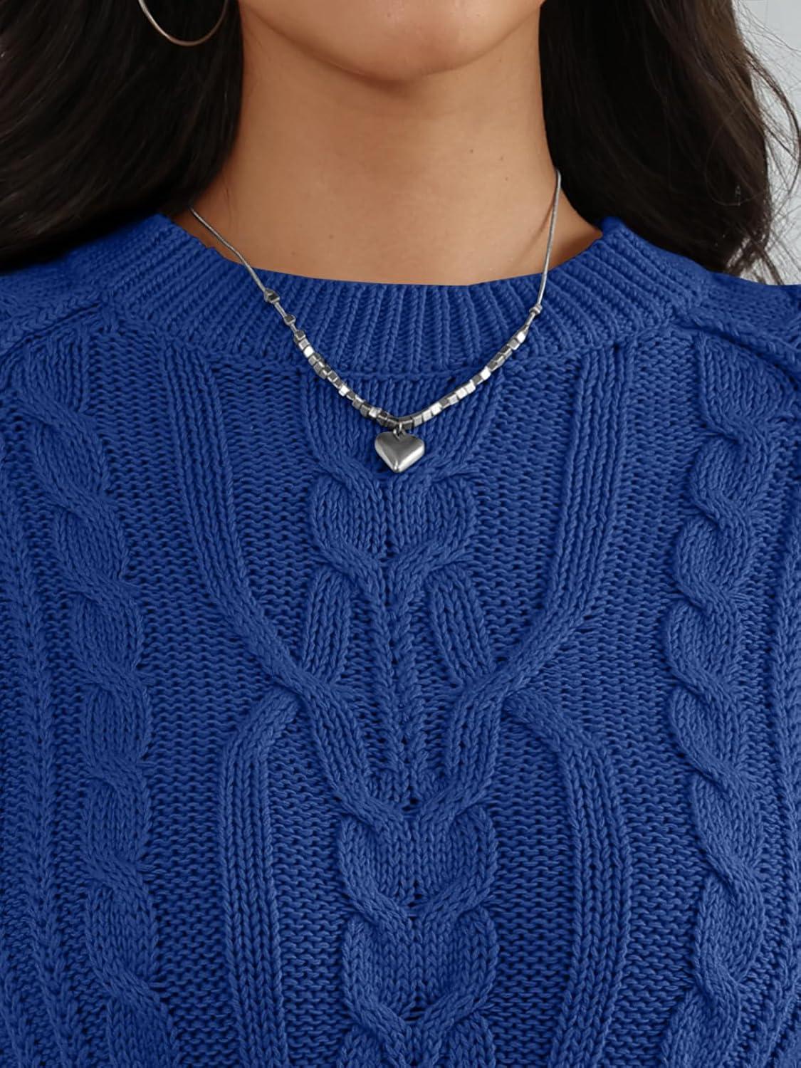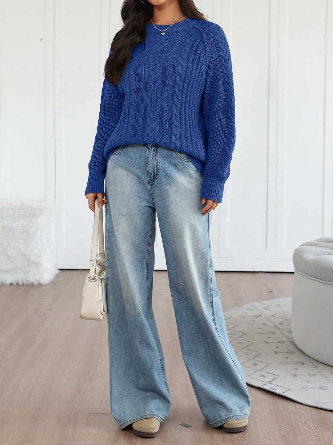 Trendy Queen Women’s Oversized Cable Knit Crewneck Fall Pullover Sweaters(Blue)
