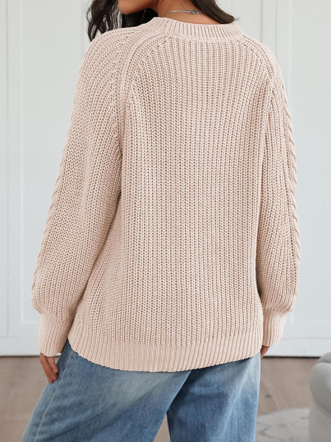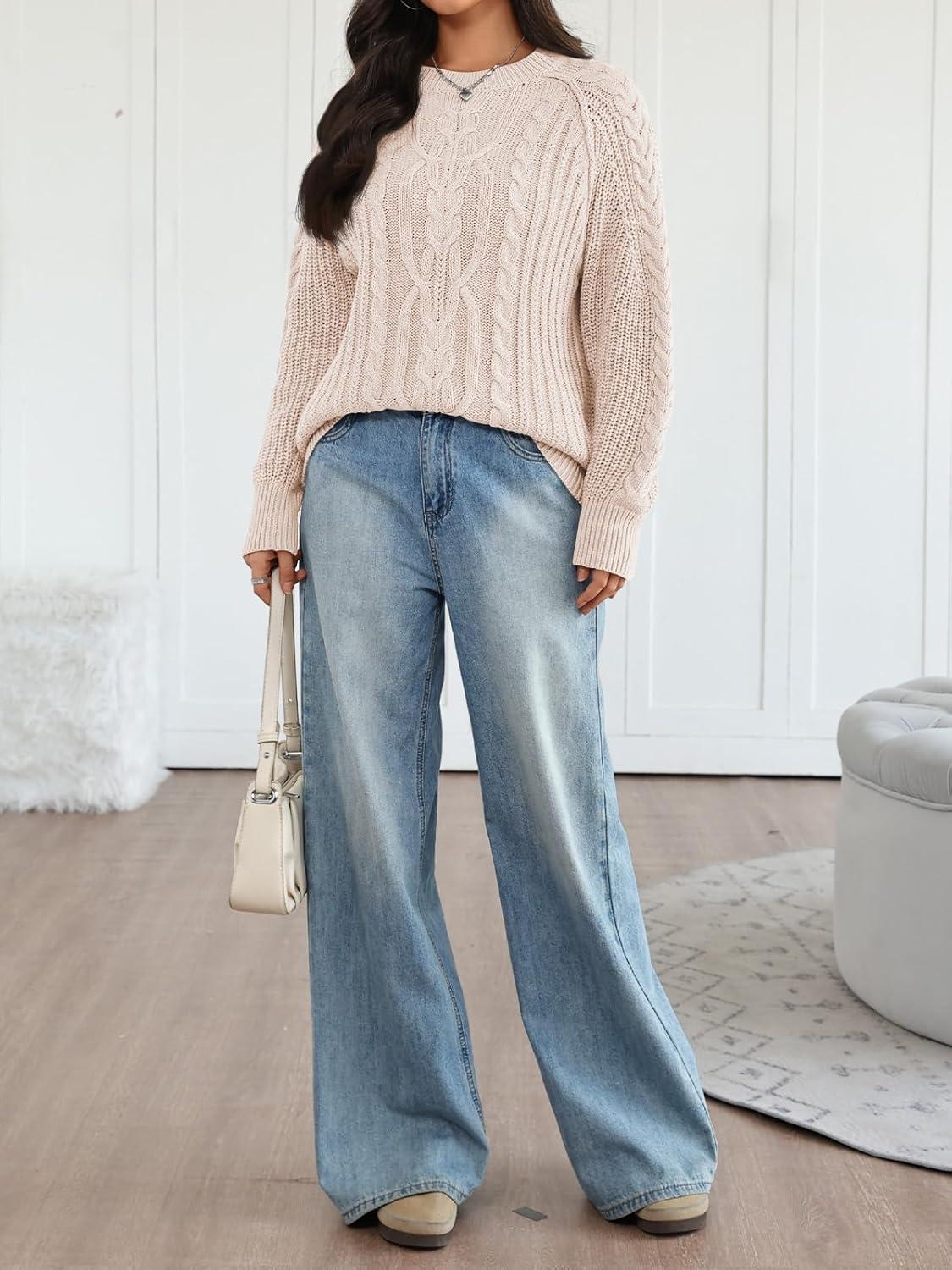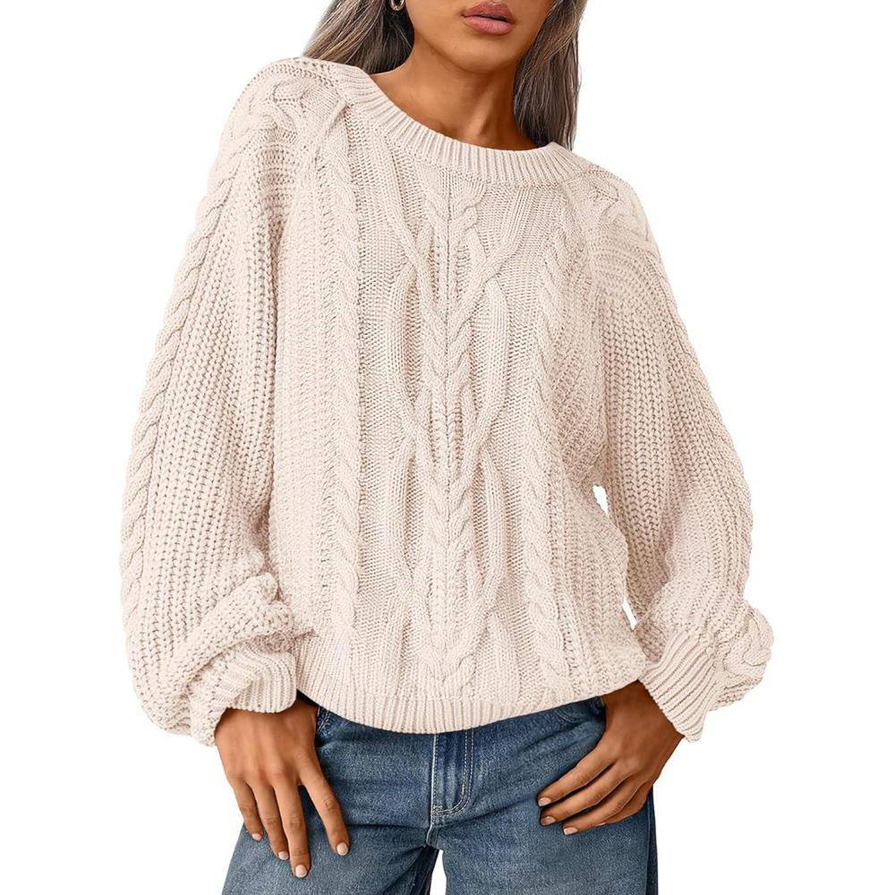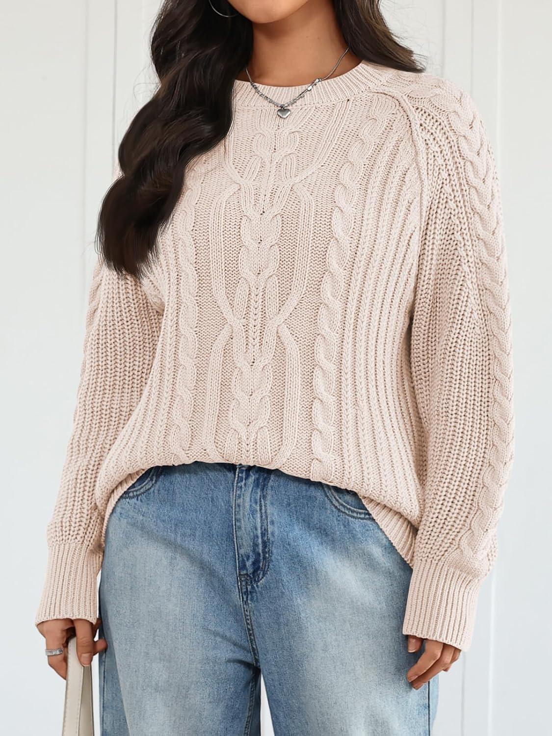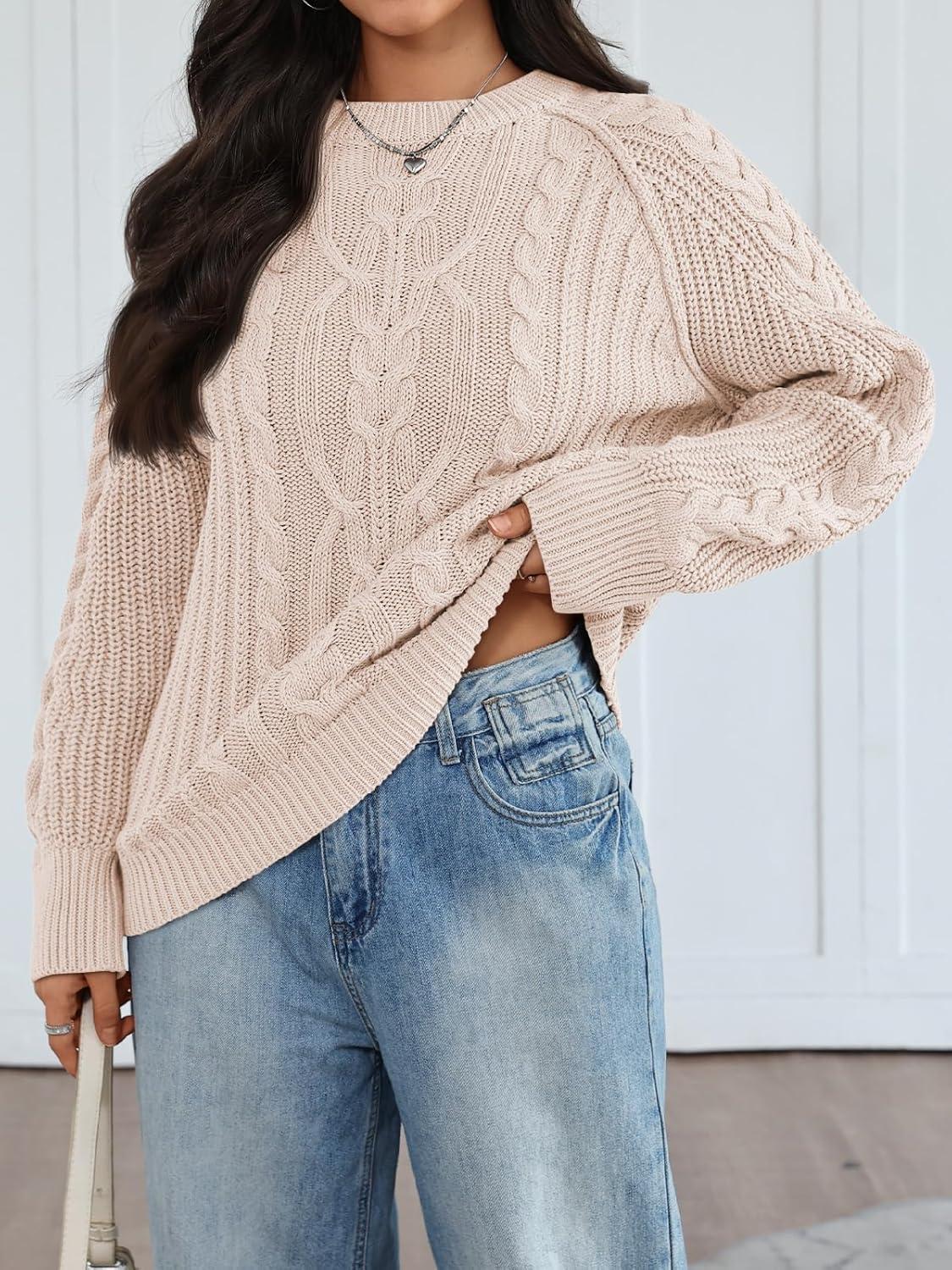 Trendy Queen Women's Oversized Cable Knit Crewneck Fall Pullover Sweaters(Cream)