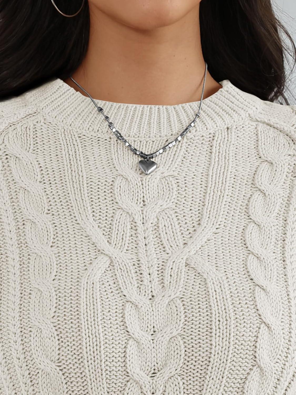 Trendy Queen Women's Oversized Cable Knit Crewneck Fall Pullover Sweaters(White)