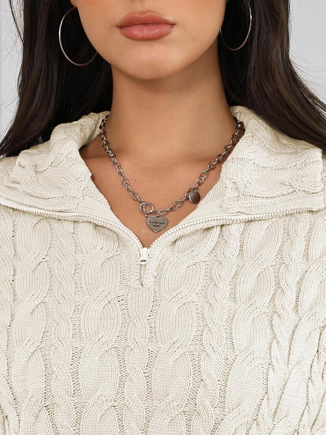 Be the first to review “Trendy Queen Women’s Oversized Cable Knit Quarter Zip Up Pullover Sweaters 2025(Cream)”