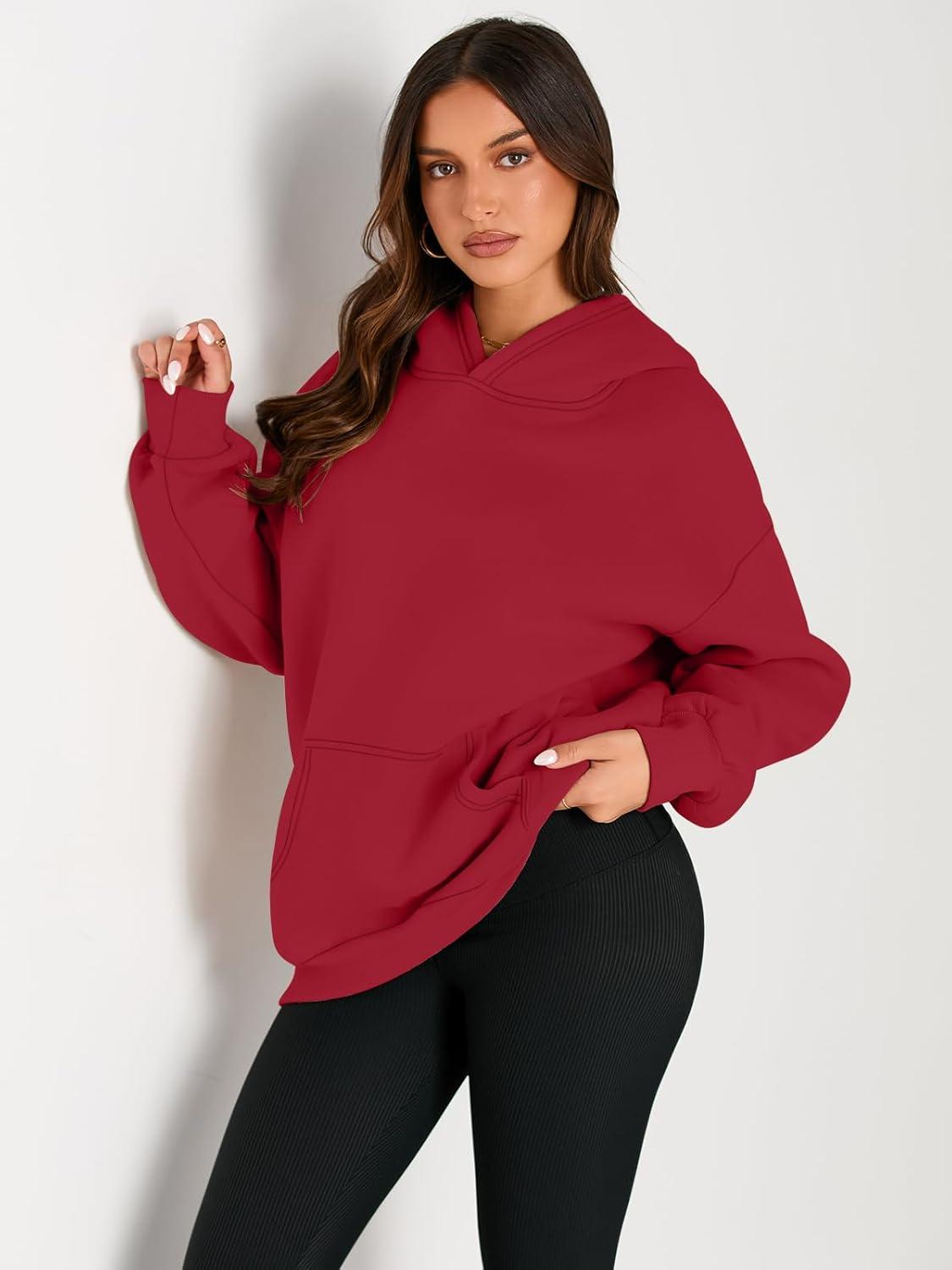 Trendy Queen Womens Oversized Hoodies Fleece Sweatshirts Fall Fashion 2025 Pullover Sweaters Winter Clothes(Deep Red)