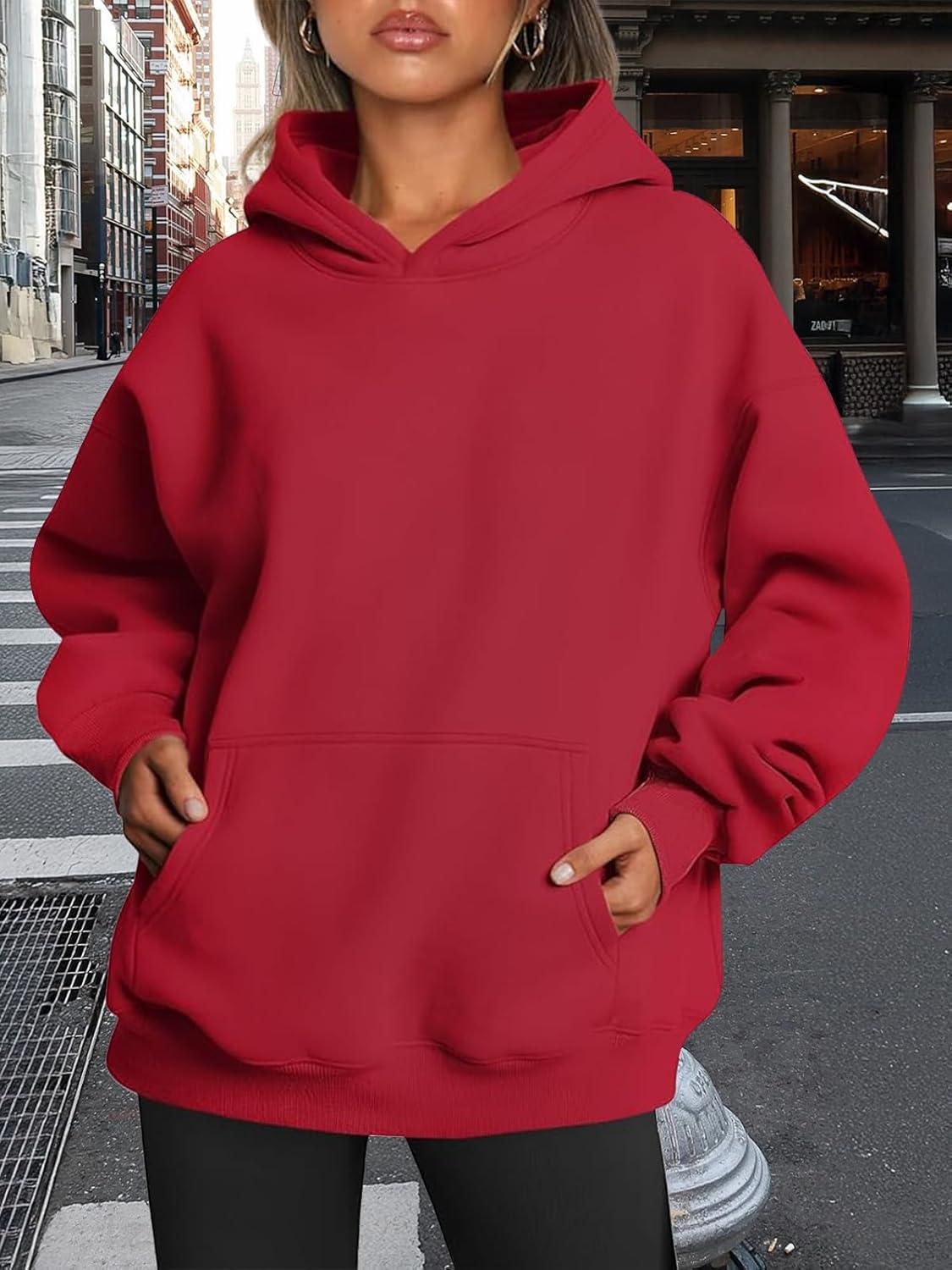 Trendy Queen Womens Oversized Hoodies Fleece Sweatshirts Fall Fashion Pullover Sweaters Winter Clothes(Fiery Red)