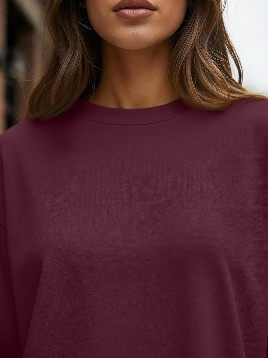 Trendy Queen Womens Oversized Long Sleeve T Shirts 2025 Basic Crewneck Tee Fall Tops Casual Workout Y2K Clothes(Burgundy)