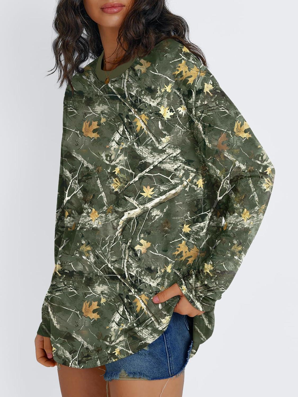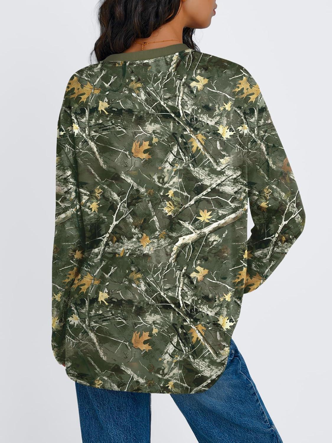 Trendy Queen Womens Oversized Long Sleeve T Shirts 2025 Basic Crewneck Tee Fall Tops Casual Workout Y2K Clothes(Camoblack)