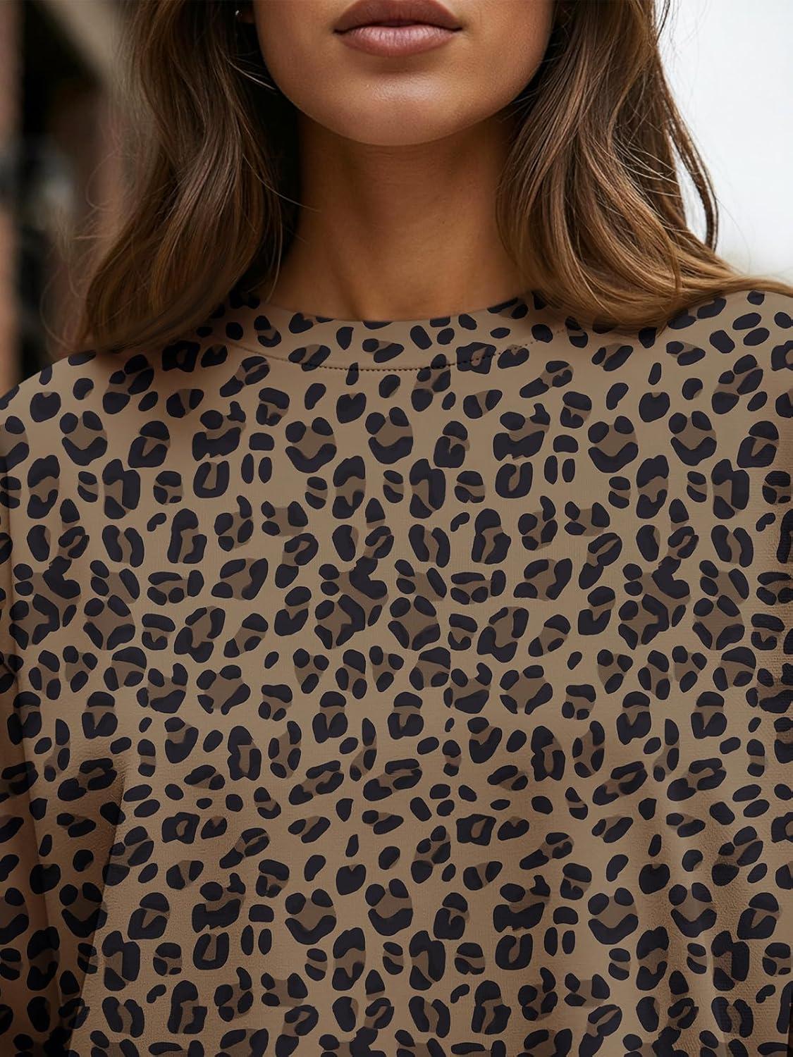 Trendy Queen Womens Oversized Long Sleeve T Shirts 2025 Basic Crewneck Tee Fall Tops Casual Workout Y2K Clothes(Leopard)