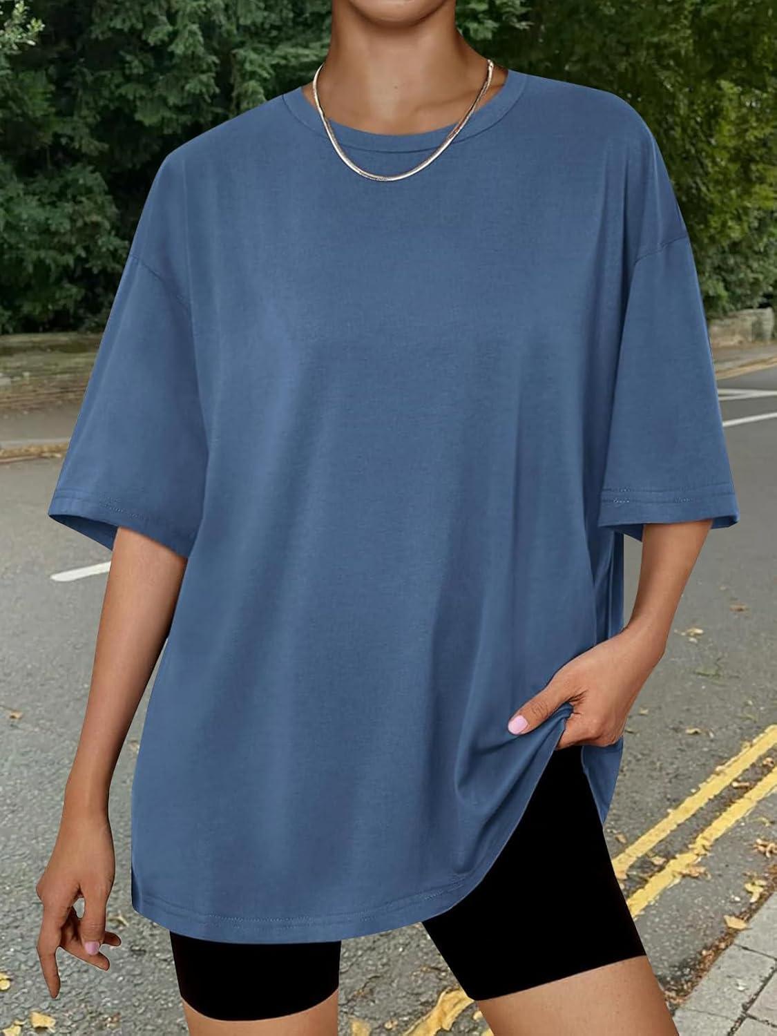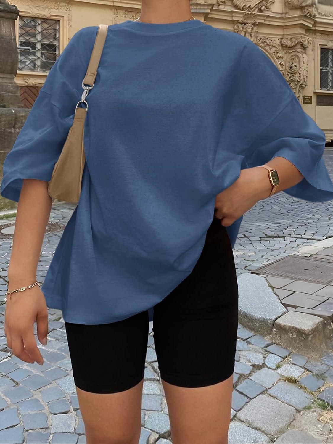 Be the first to review “Trendy Queen Womens Oversized Summer T Shirts Plus Size Batwing Cute Casual Tops Short Sleeves Fashion Workout Clothes(Blue)”