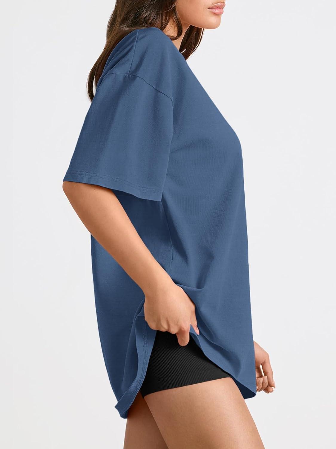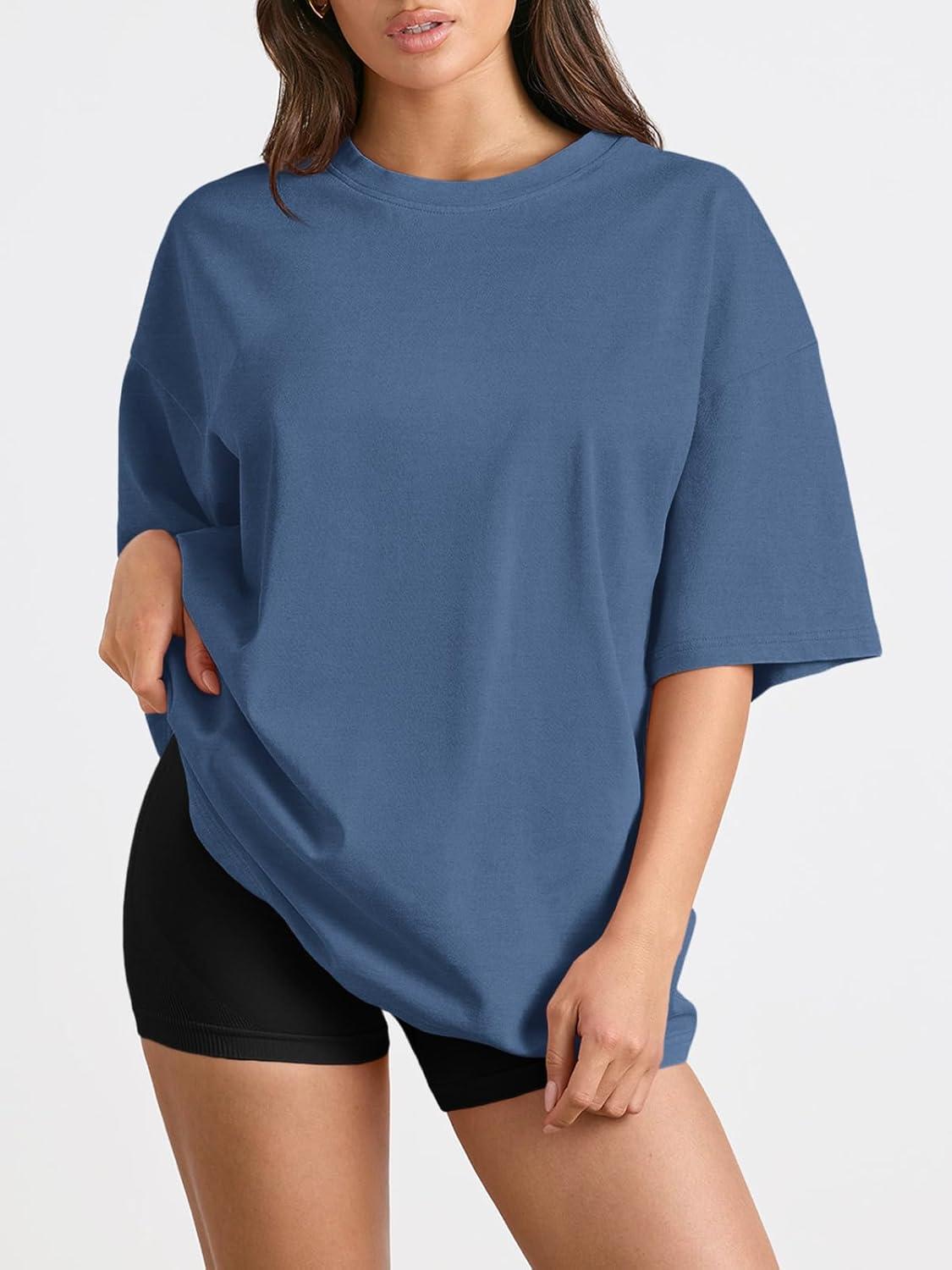 Trendy Queen Womens Oversized Summer T Shirts Plus Size Batwing Cute Casual Tops Short Sleeves Fashion Workout Clothes(Blue)