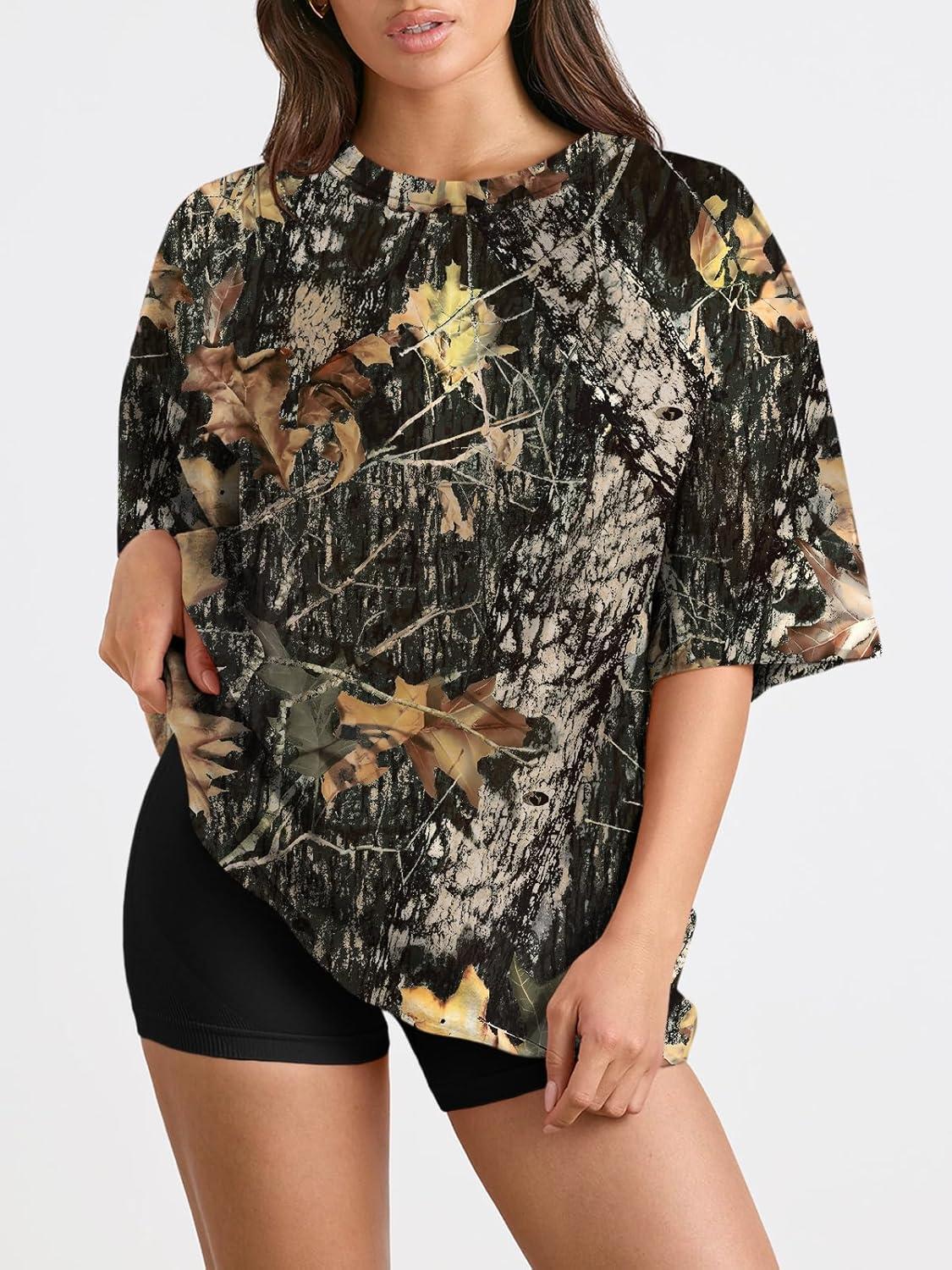 Trendy Queen Womens Oversized Summer T Shirts Plus Size Batwing Cute Casual Tops Short Sleeves Fashion Workout Clothes(Camo Brown)