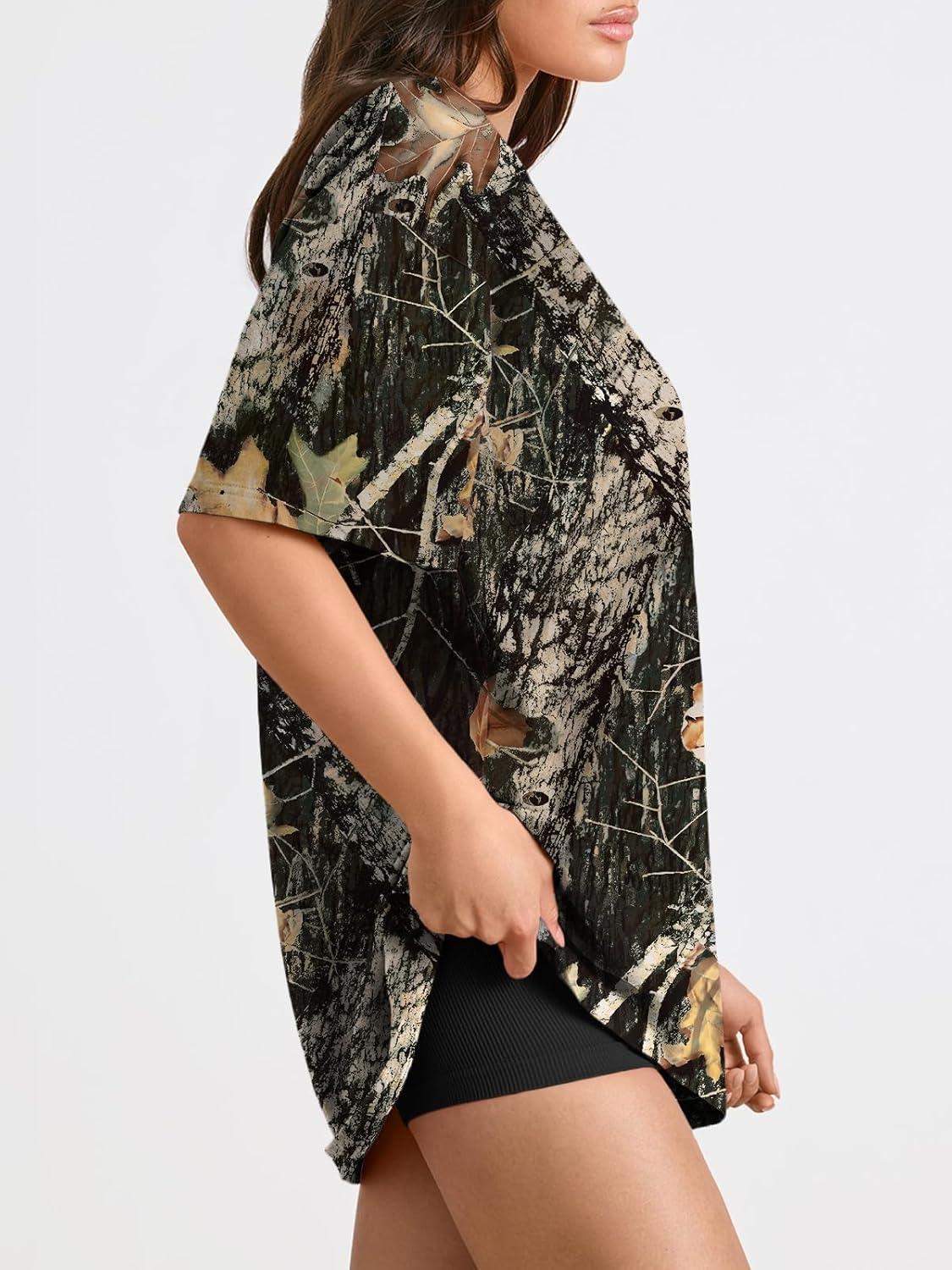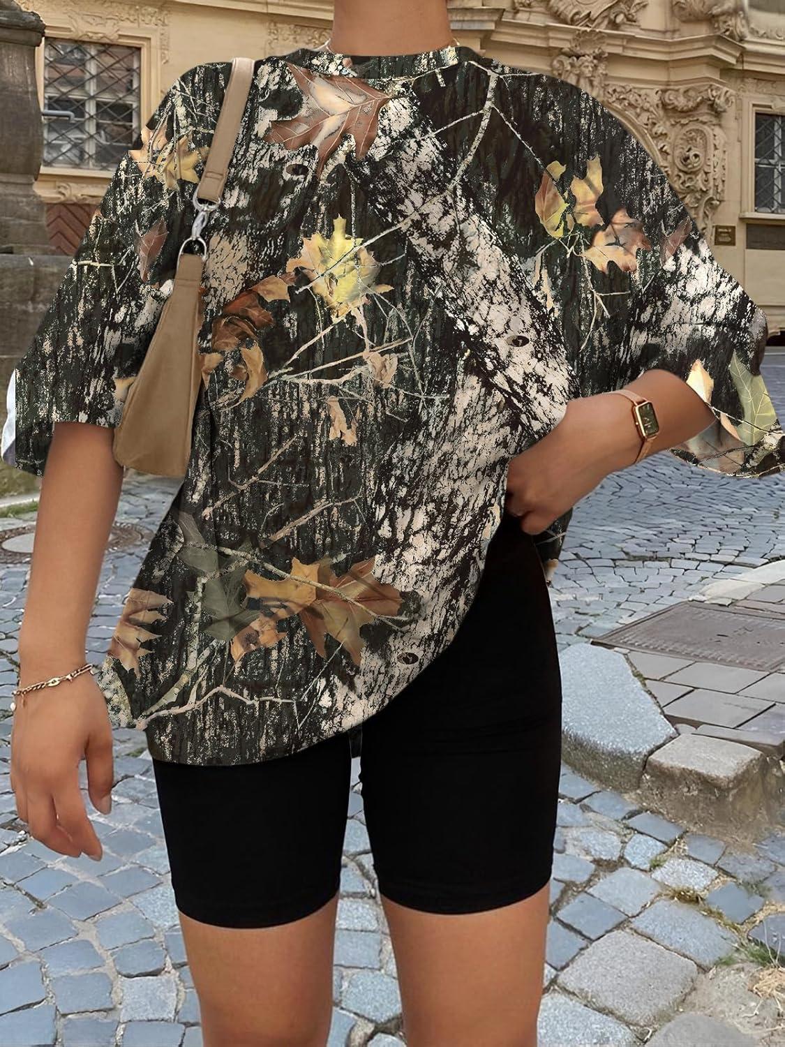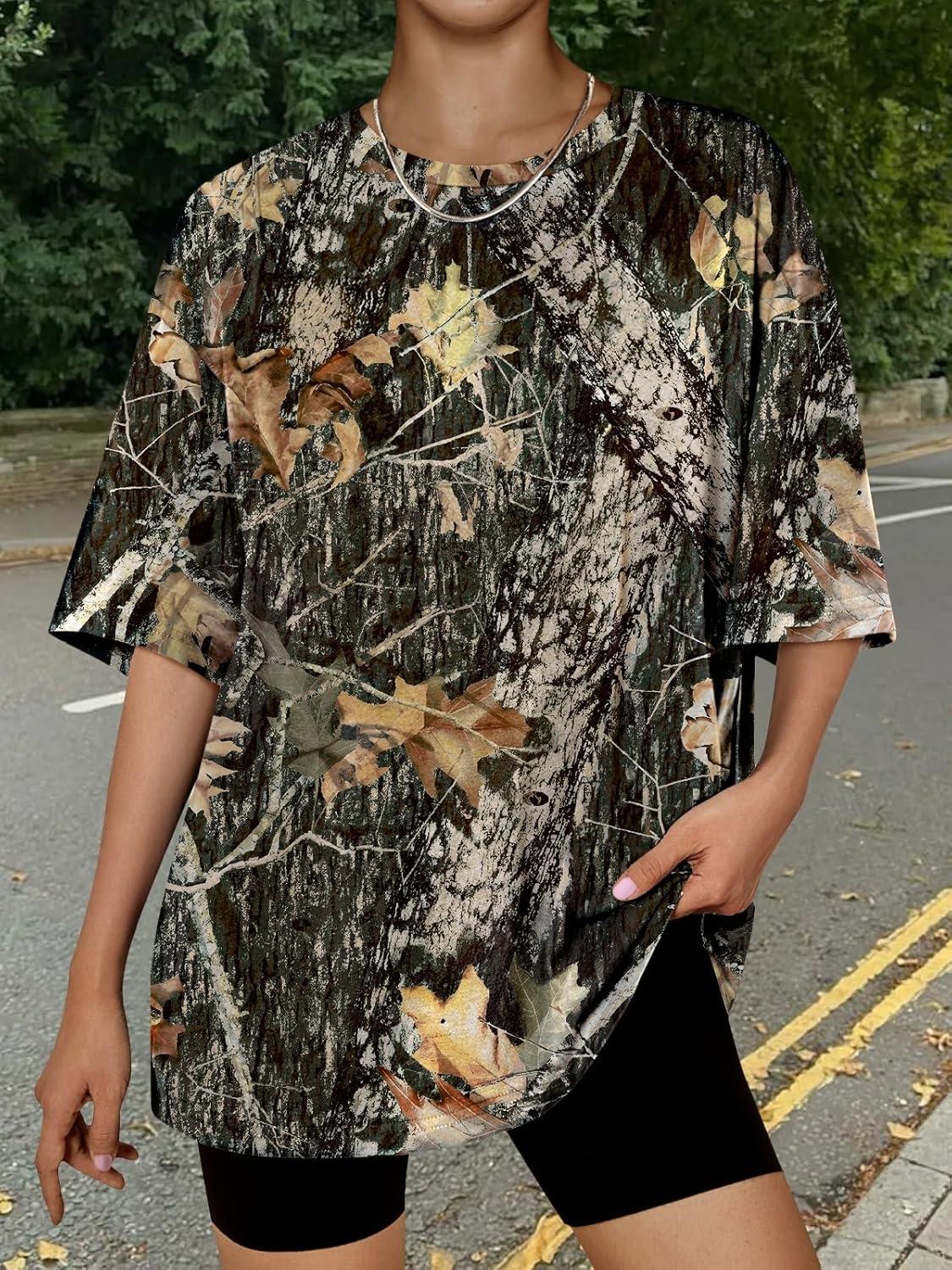 Trendy Queen Womens Oversized Summer T Shirts Plus Size Batwing Cute Casual Tops Short Sleeves Fashion Workout Clothes(Camo Dark)
