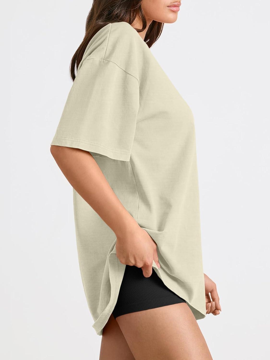 imageTrendy Queen Womens Oversized Summer T Shirts Plus Size Batwing Cute Casual Tops Short Sleeves Fashion Workout ClothesLightyellow