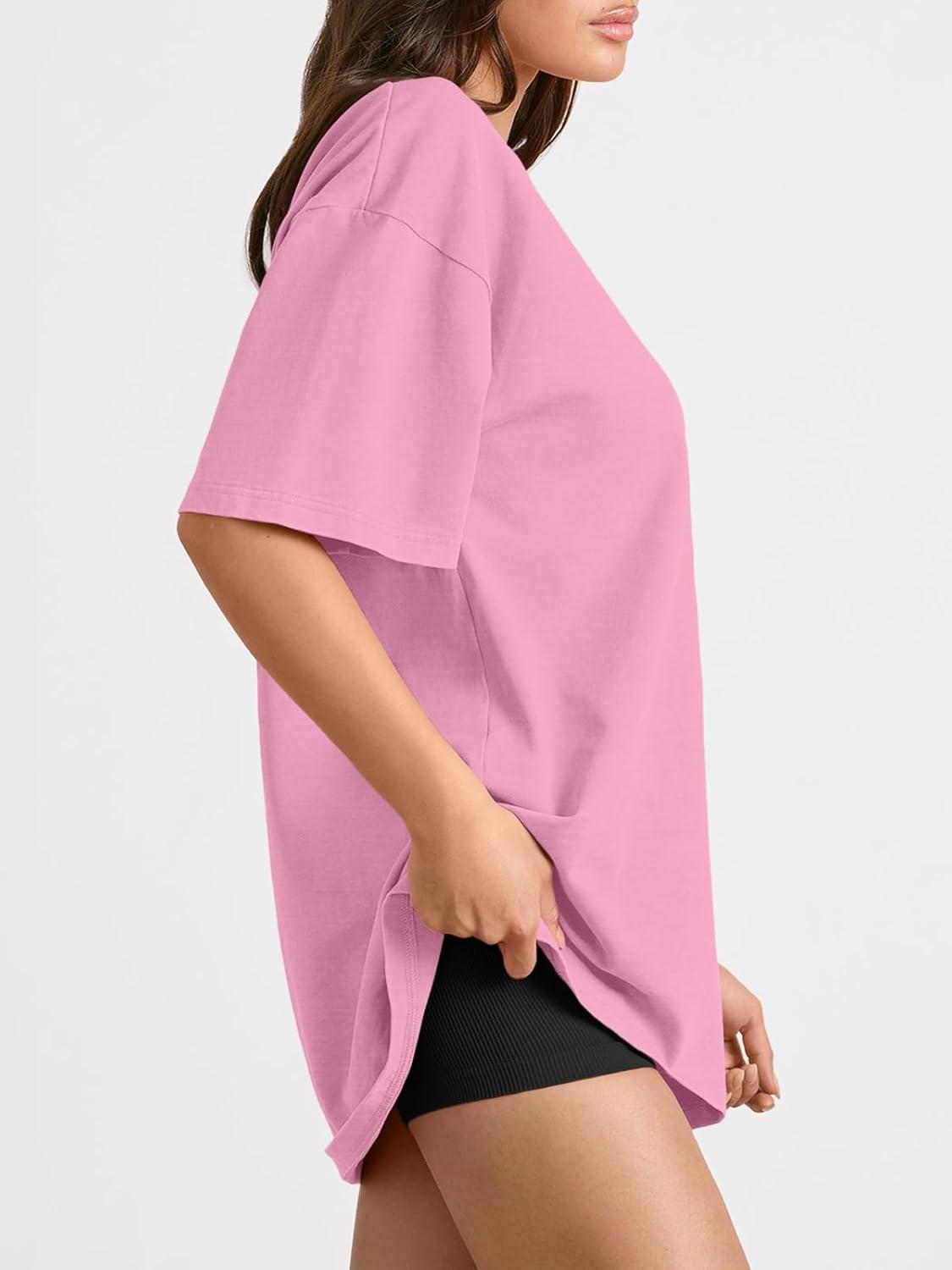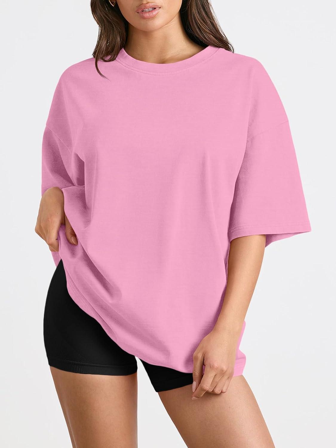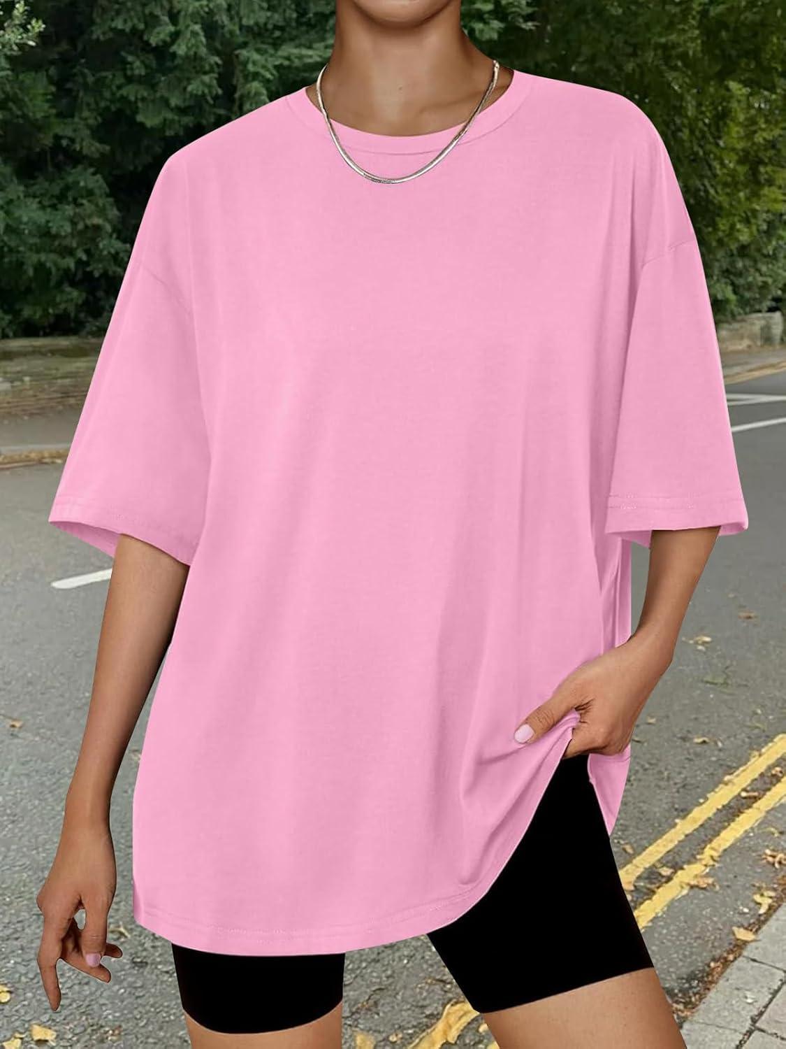 imageTrendy Queen Womens Oversized Summer T Shirts Plus Size Batwing Cute Casual Tops Short Sleeves Fashion Workout ClothesPink