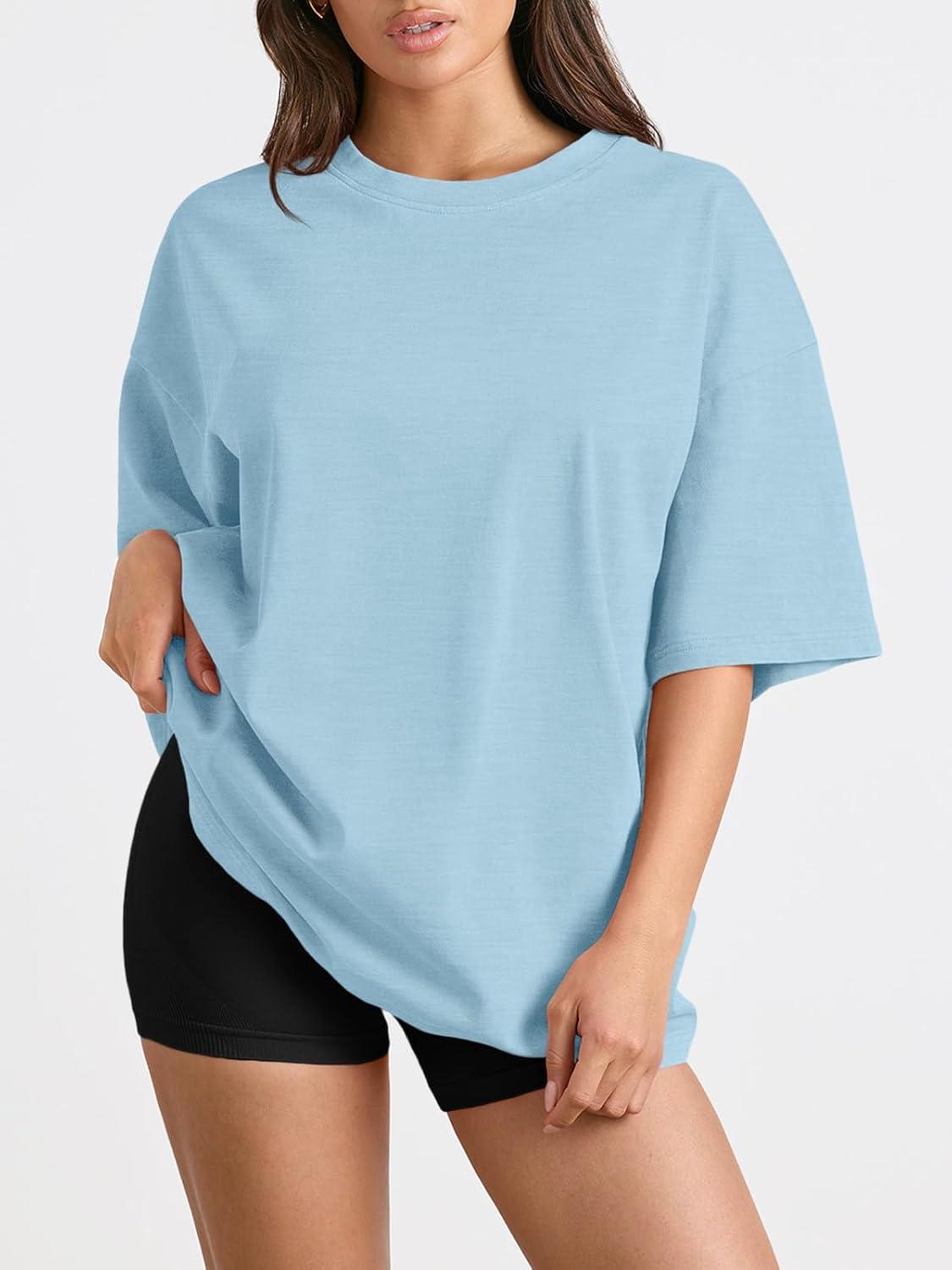 imageTrendy Queen Womens Oversized Summer T Shirts Plus Size Batwing Cute Casual Tops Short Sleeves Fashion Workout ClothesSkyblue