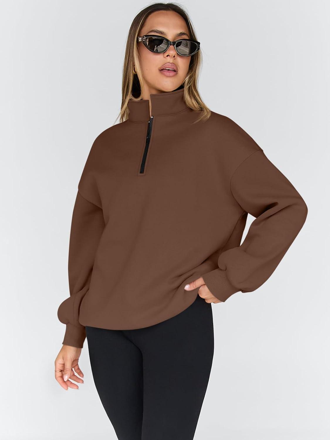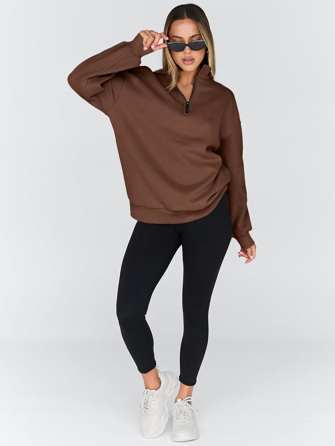 Trendy Queen Womens Oversized Sweatshirts Fall Sweaters Fashion Hoodies Half Zip Pullover Long Sleeve Shirts Clothes(Coffee)