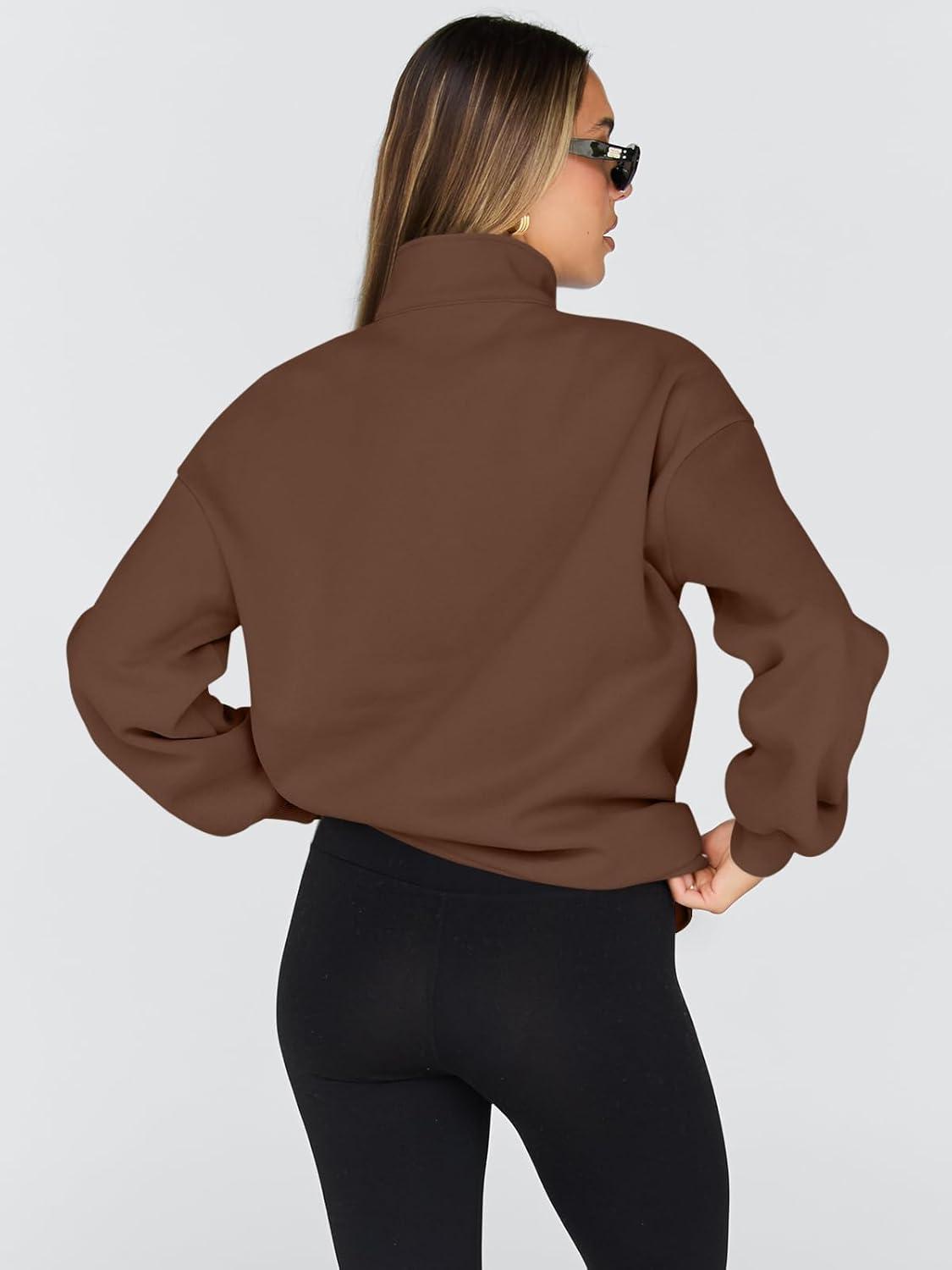 imageTrendy Queen Womens Oversized Sweatshirts Fall Sweaters Fashion Hoodies Half Zip Pullover Long Sleeve Shirts ClothesBrown