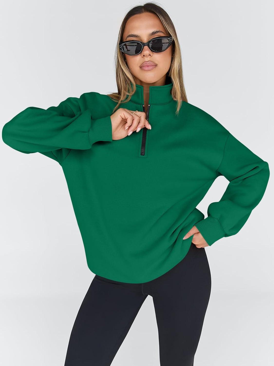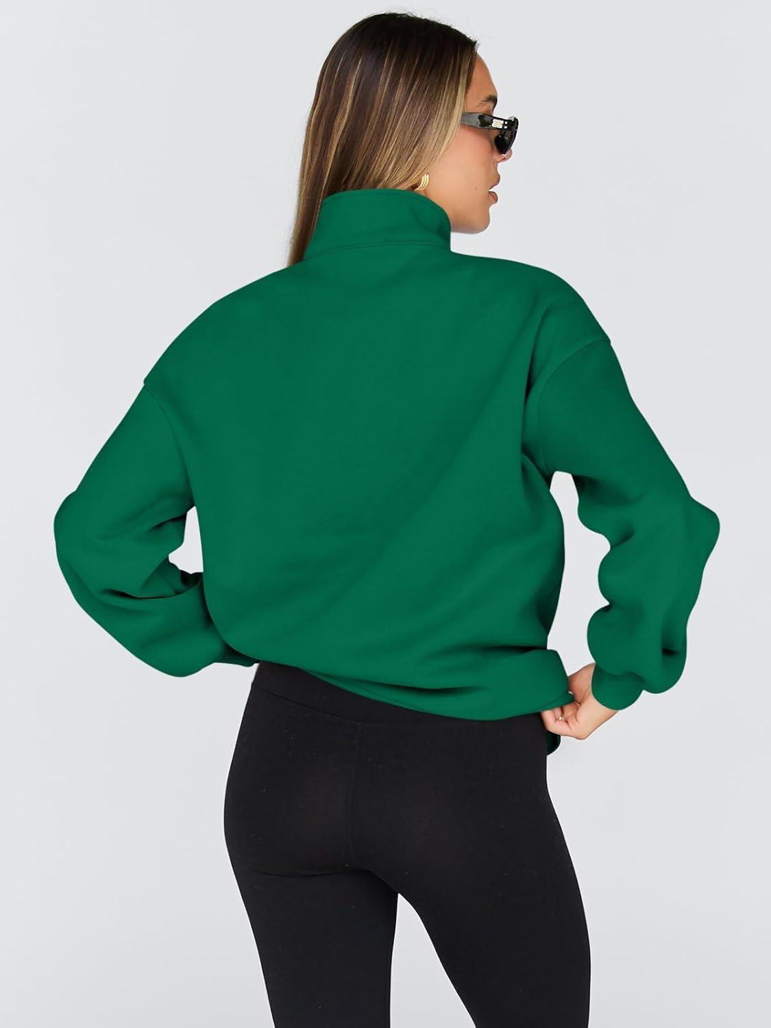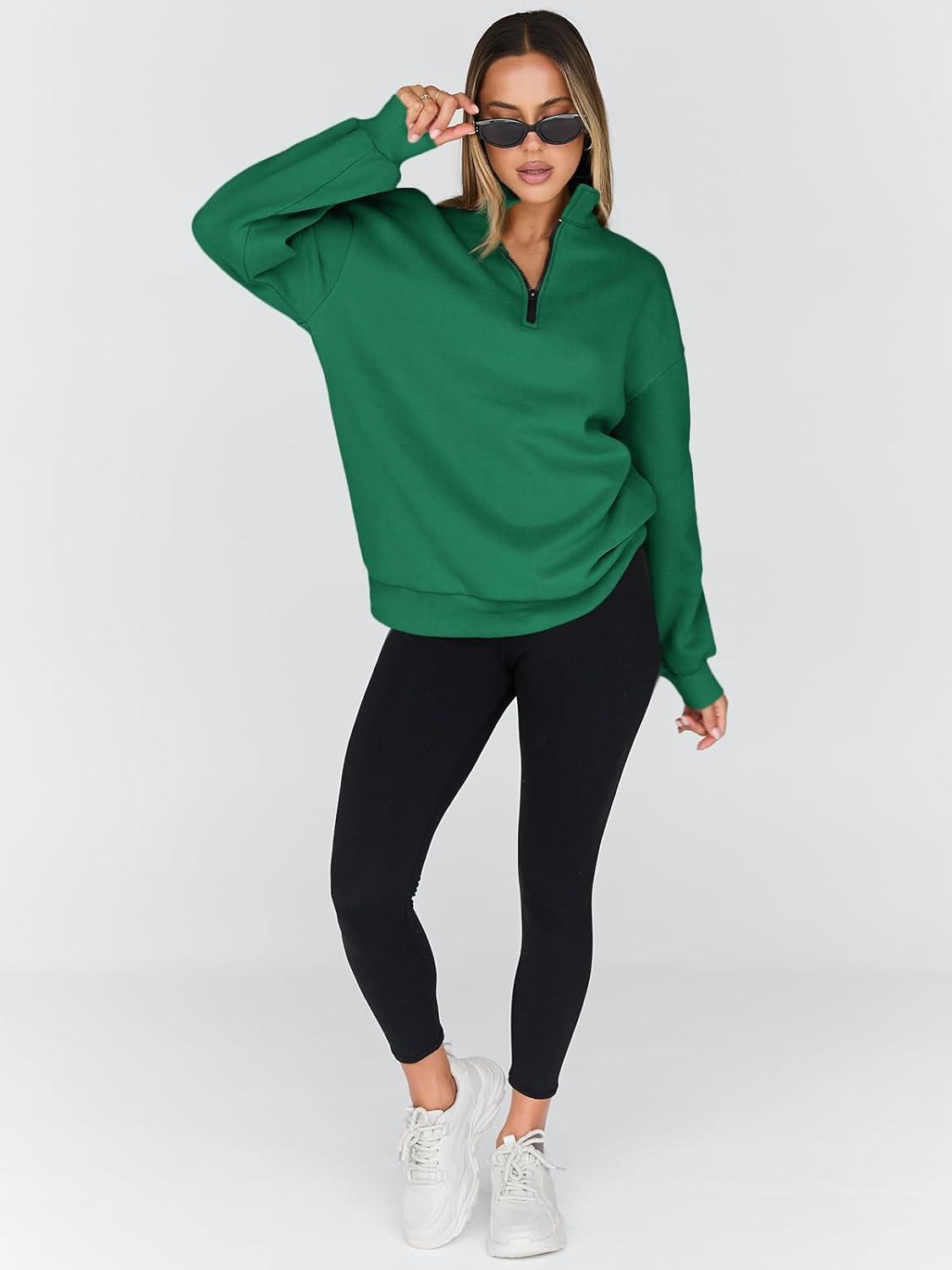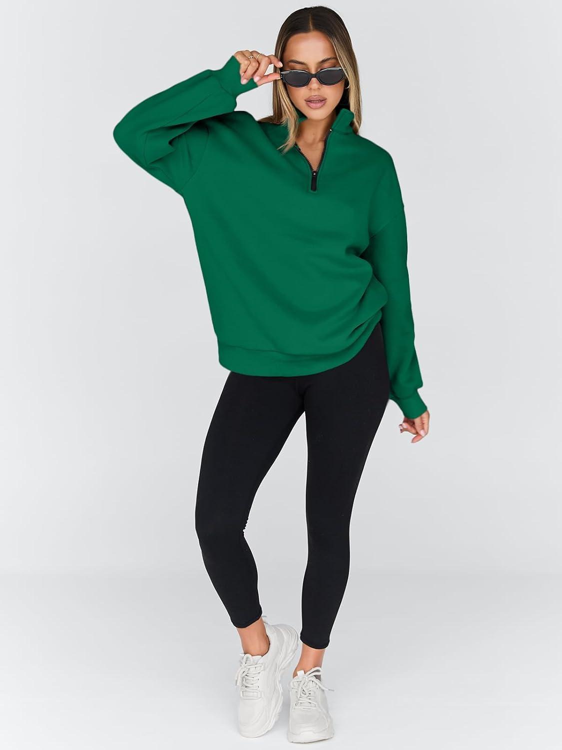 Trendy Queen Womens Oversized Sweatshirts Fall Sweaters Fashion Hoodies Half Zip Pullover Long Sleeve Shirts Clothes(Grass)