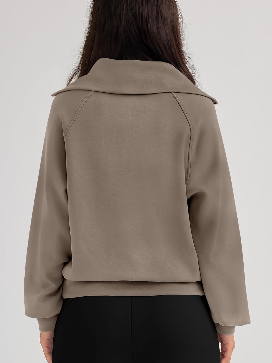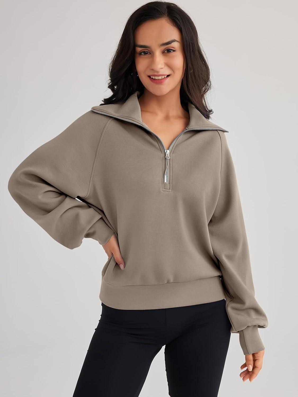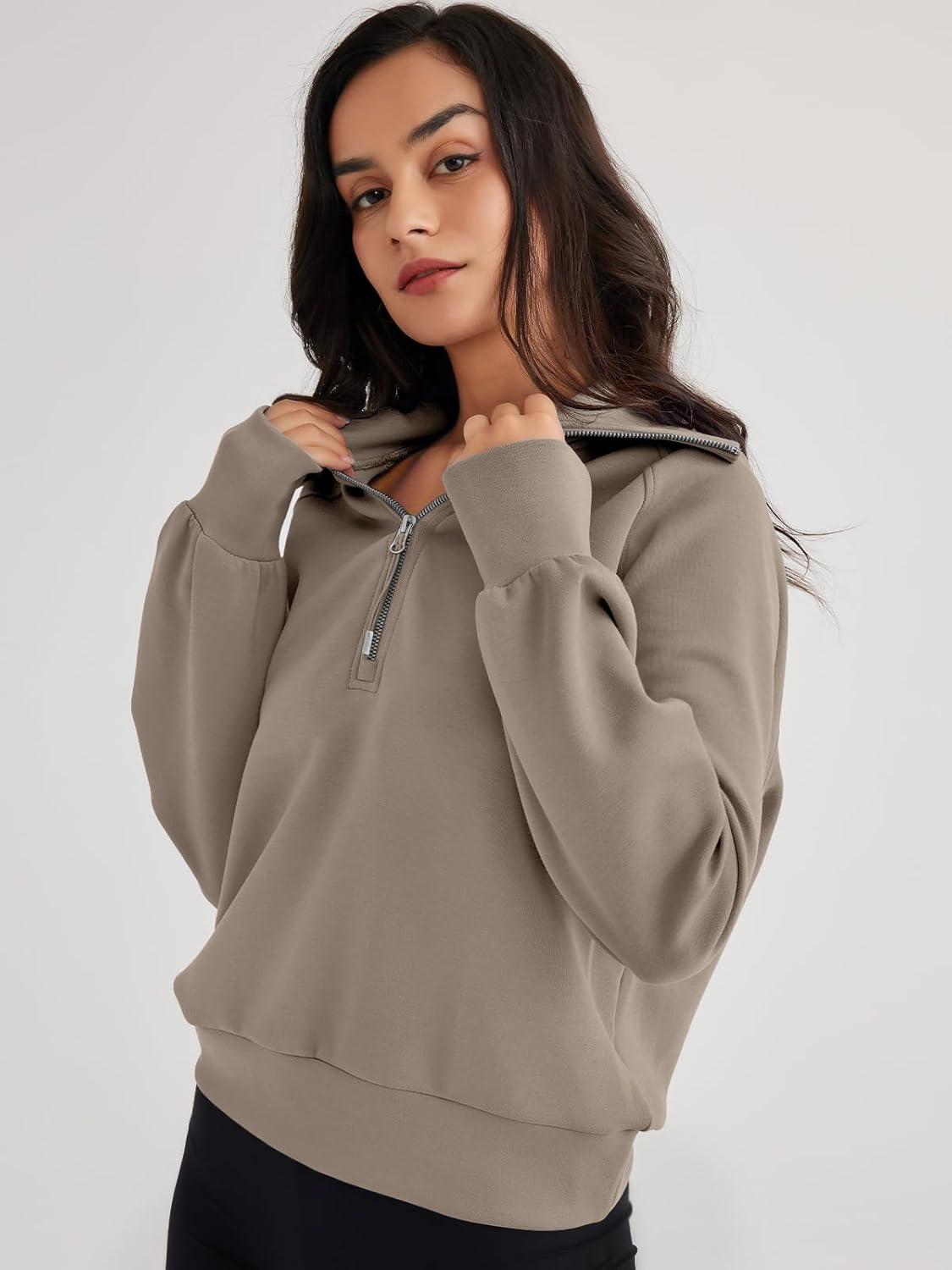 Trendy Queen Womens Oversized Sweatshirts Half Zip Pullover Fall Long Sleeve Quarter Zip Hoodies Teen Girls Y2K Clothes(Coffeegrey)