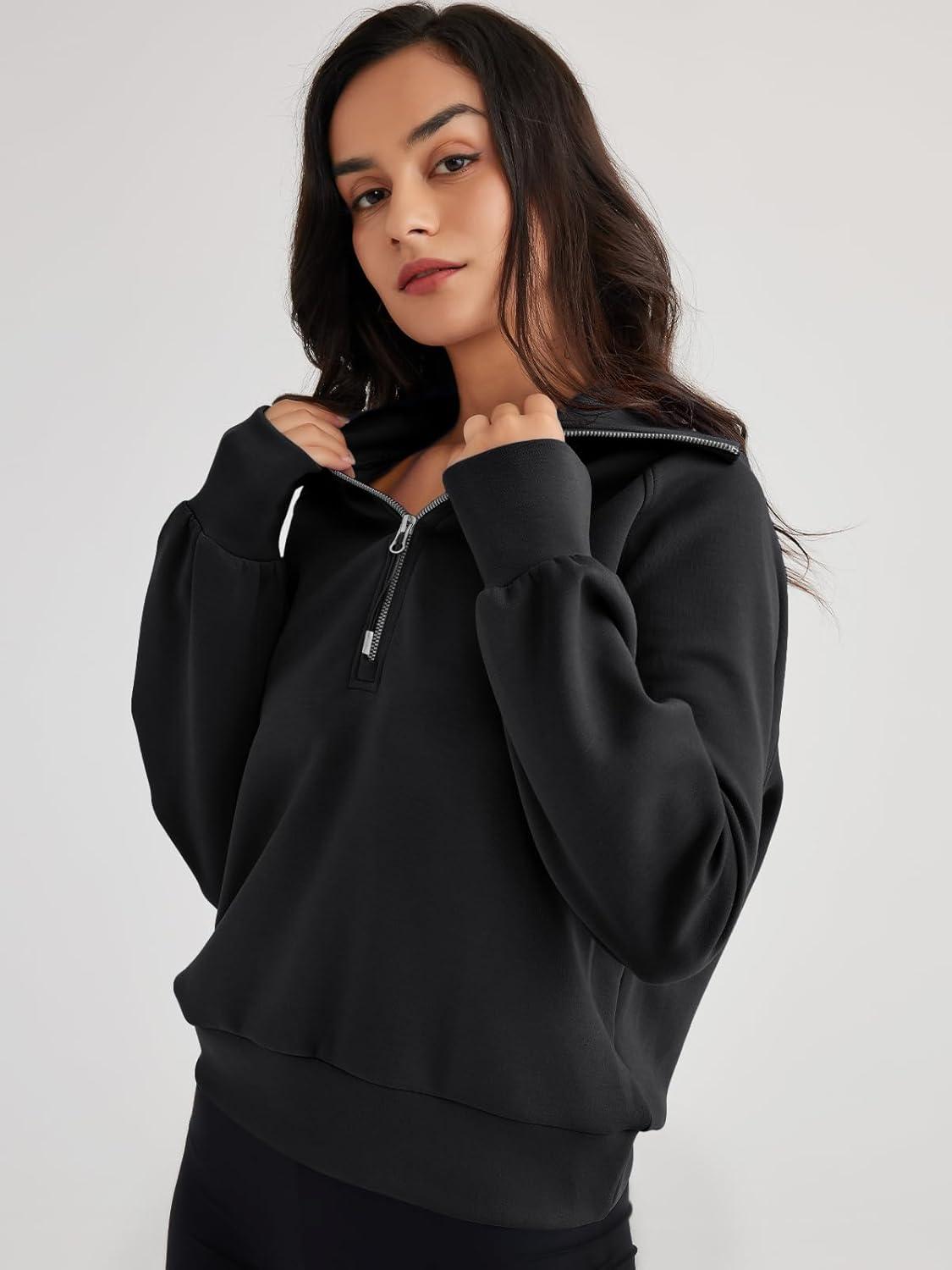 Trendy Queen Womens Oversized Sweatshirts Half Zip Pullover Long Sleeve Quarter Zip Hoodies Teen Girls Fall Y2K Clothes(Black)