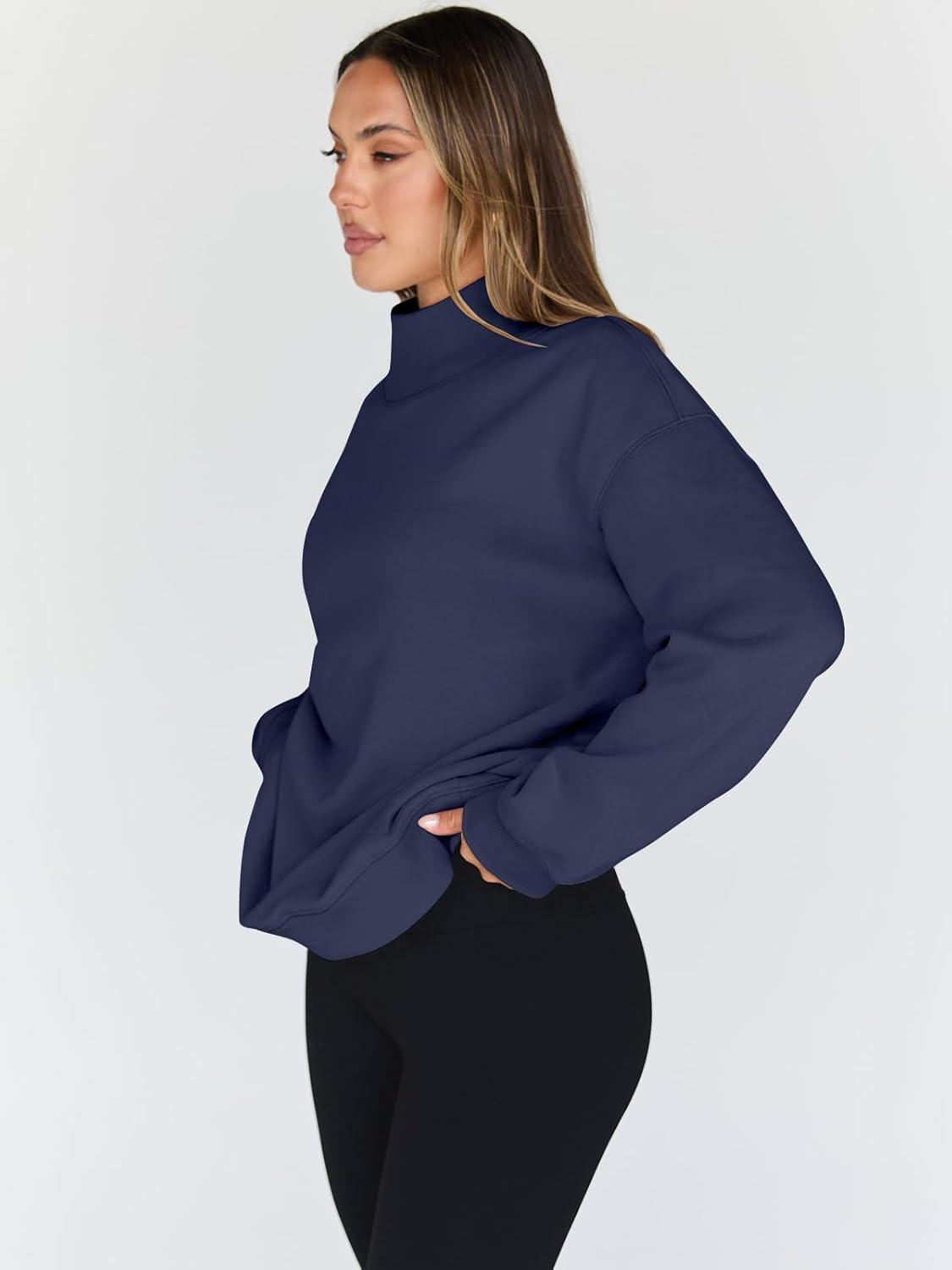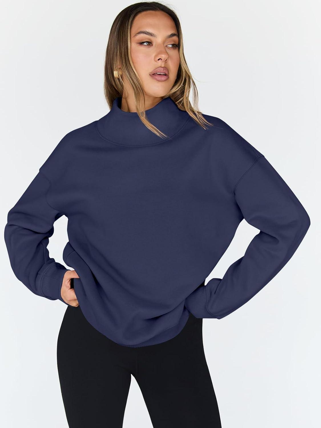 Trendy Queen Womens Oversized Sweatshirts Turtleneck Pullover Long Sleeve Hoodies Tops Fall Fashion Outfits 2025 Clothes(Nvay)