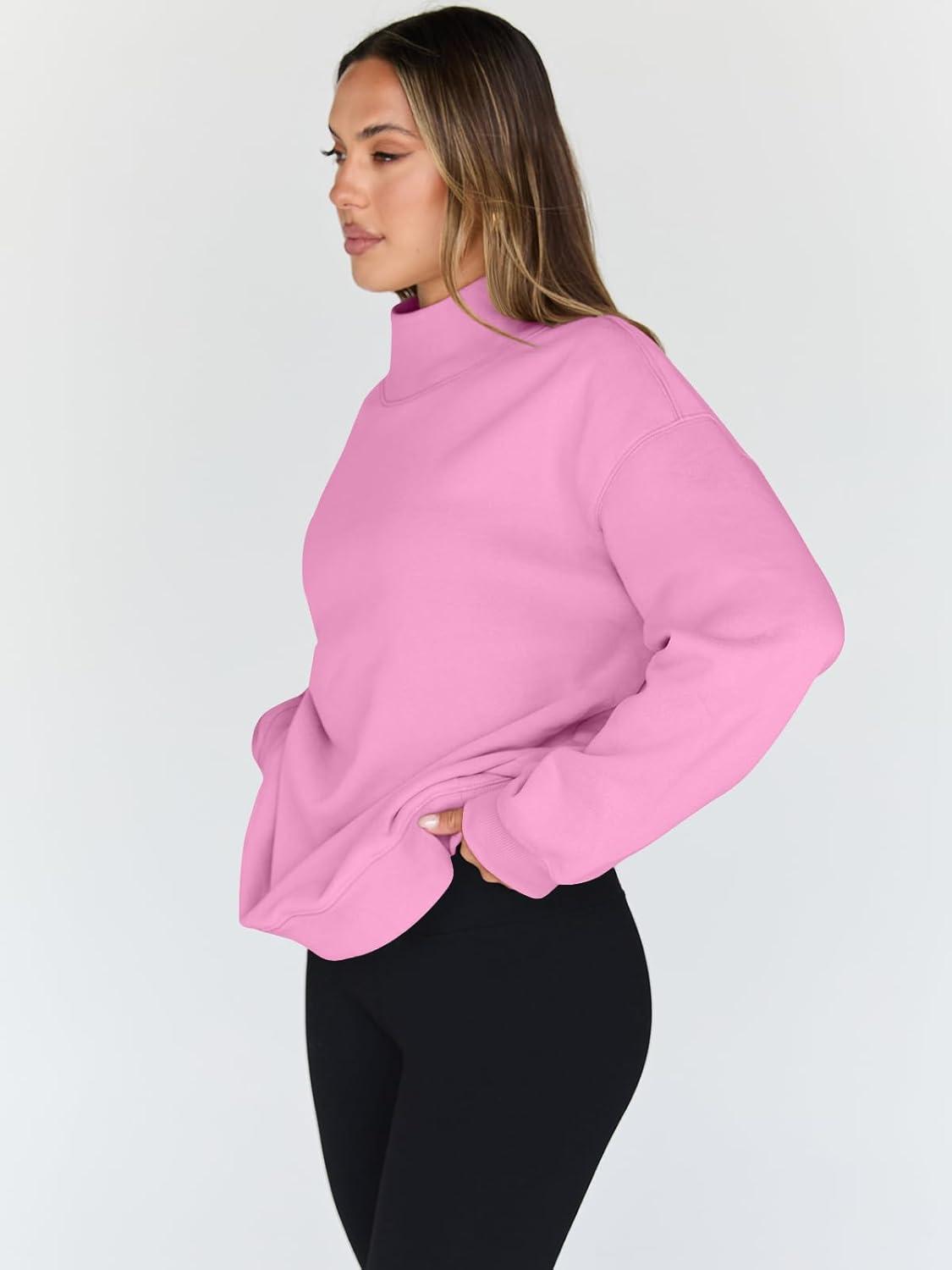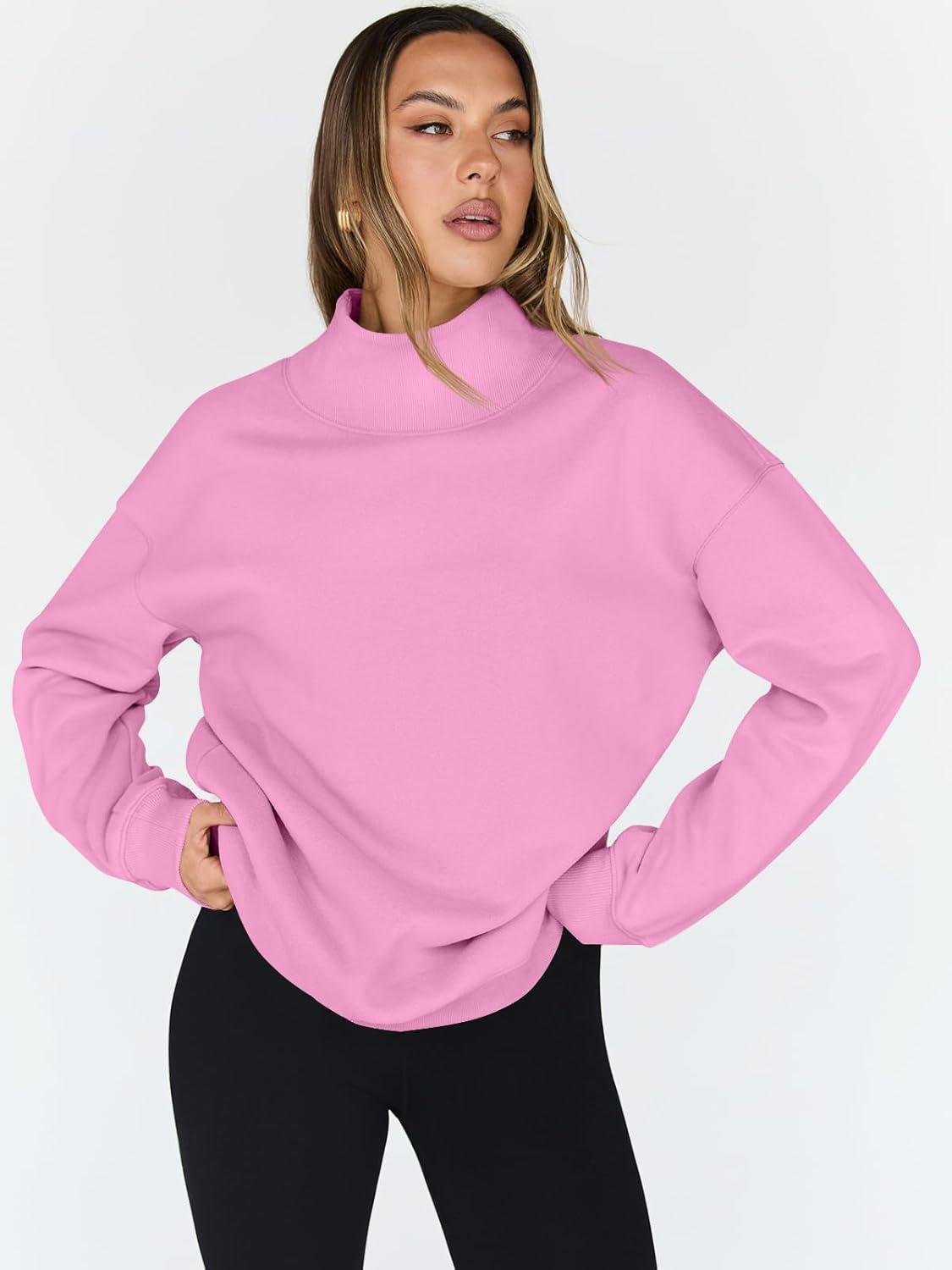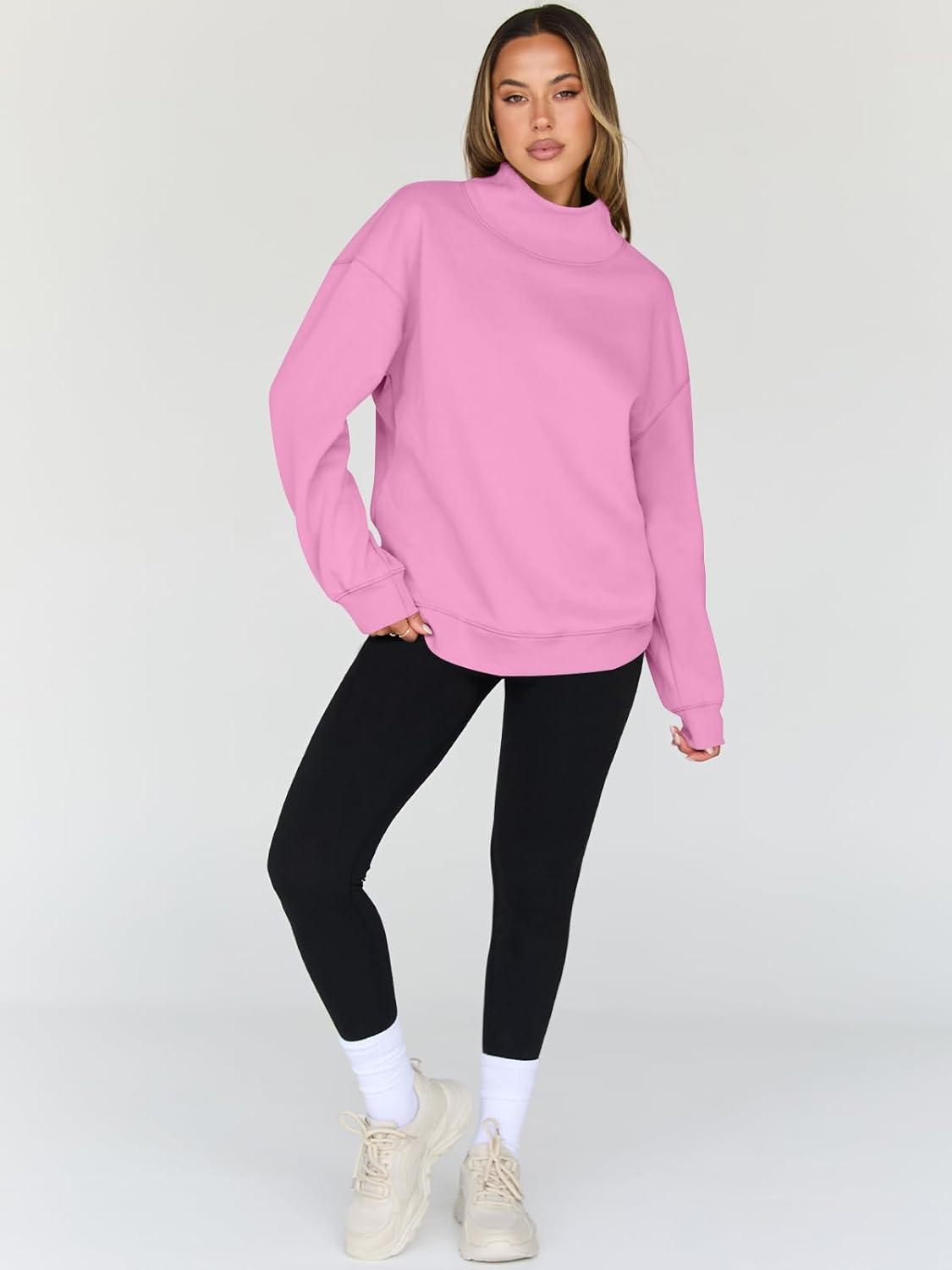Trendy Queen Womens Oversized Sweatshirts Turtleneck Pullover Long Sleeve Hoodies Tops Fall Fashion Outfits 2025 Clothes(Pink)