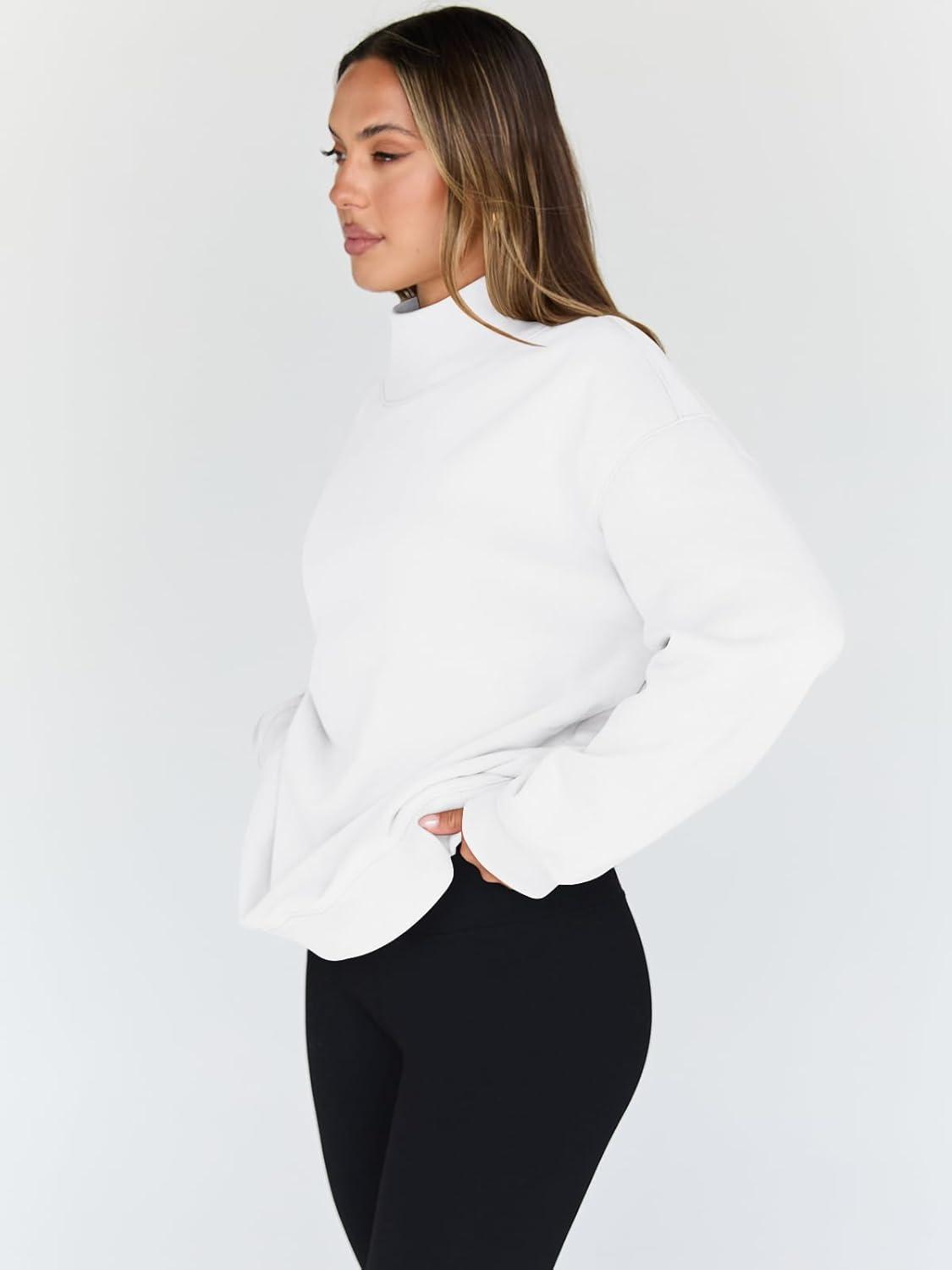 imageTrendy Queen Womens Oversized Sweatshirts Turtleneck Pullover Long Sleeve Hoodies Tops Fall Fashion Outfits 2025 ClothesWhite