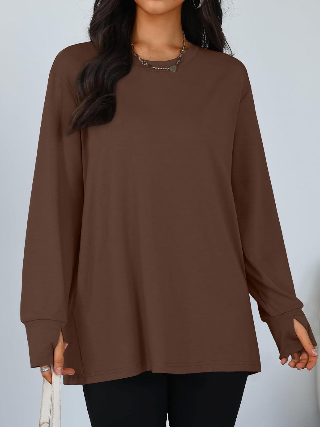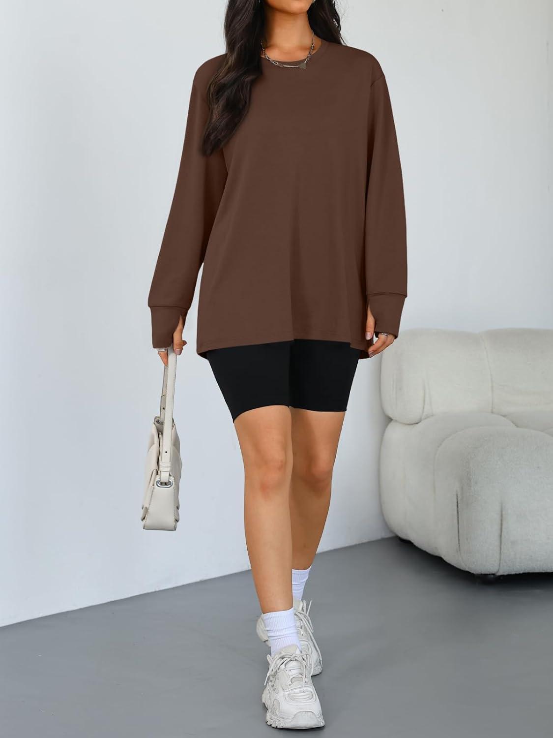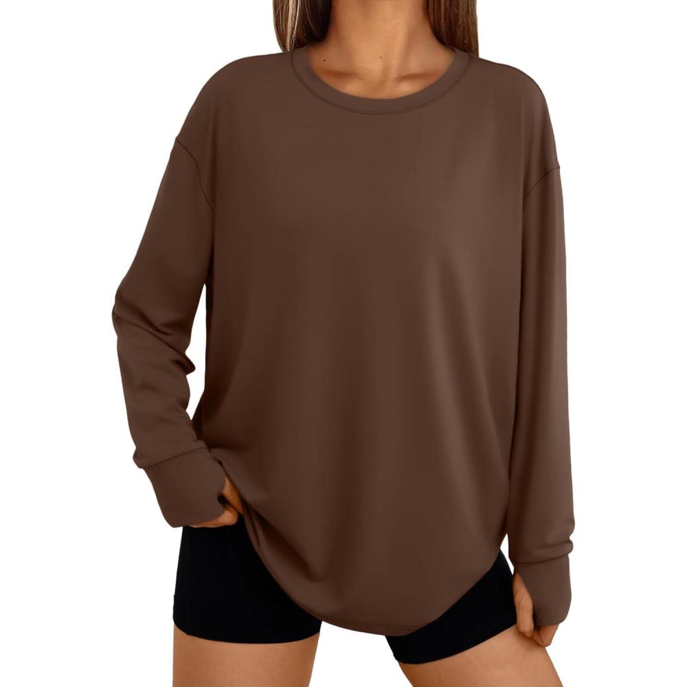 Trendy Queen Womens Oversized T Shirts Fall Tunic Thumb Hole Long Sleeve Workout Tops Fashion Plus Size Gym Loose Y2k Tee(Chocolate Brown)