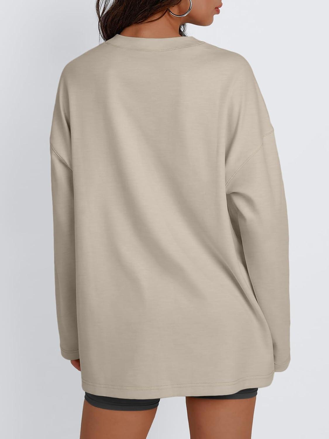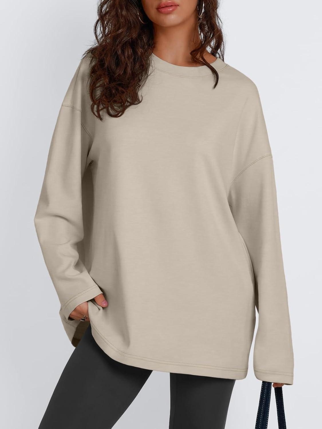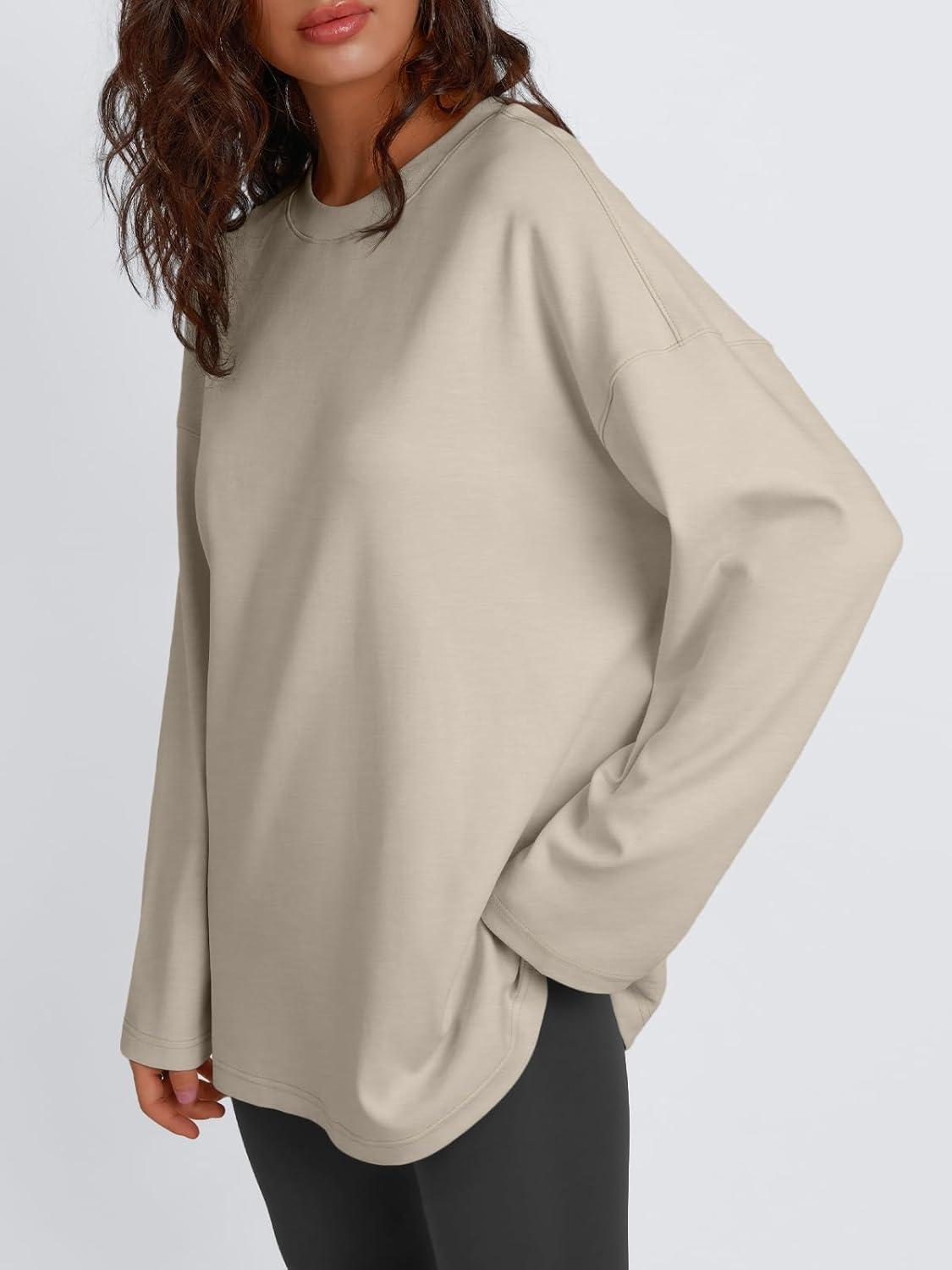 Trendy Queen Womens Oversized T Shirts Long Sleeve Shirts Casual Fall Fashion 2025 Winter Clothes(Beige)