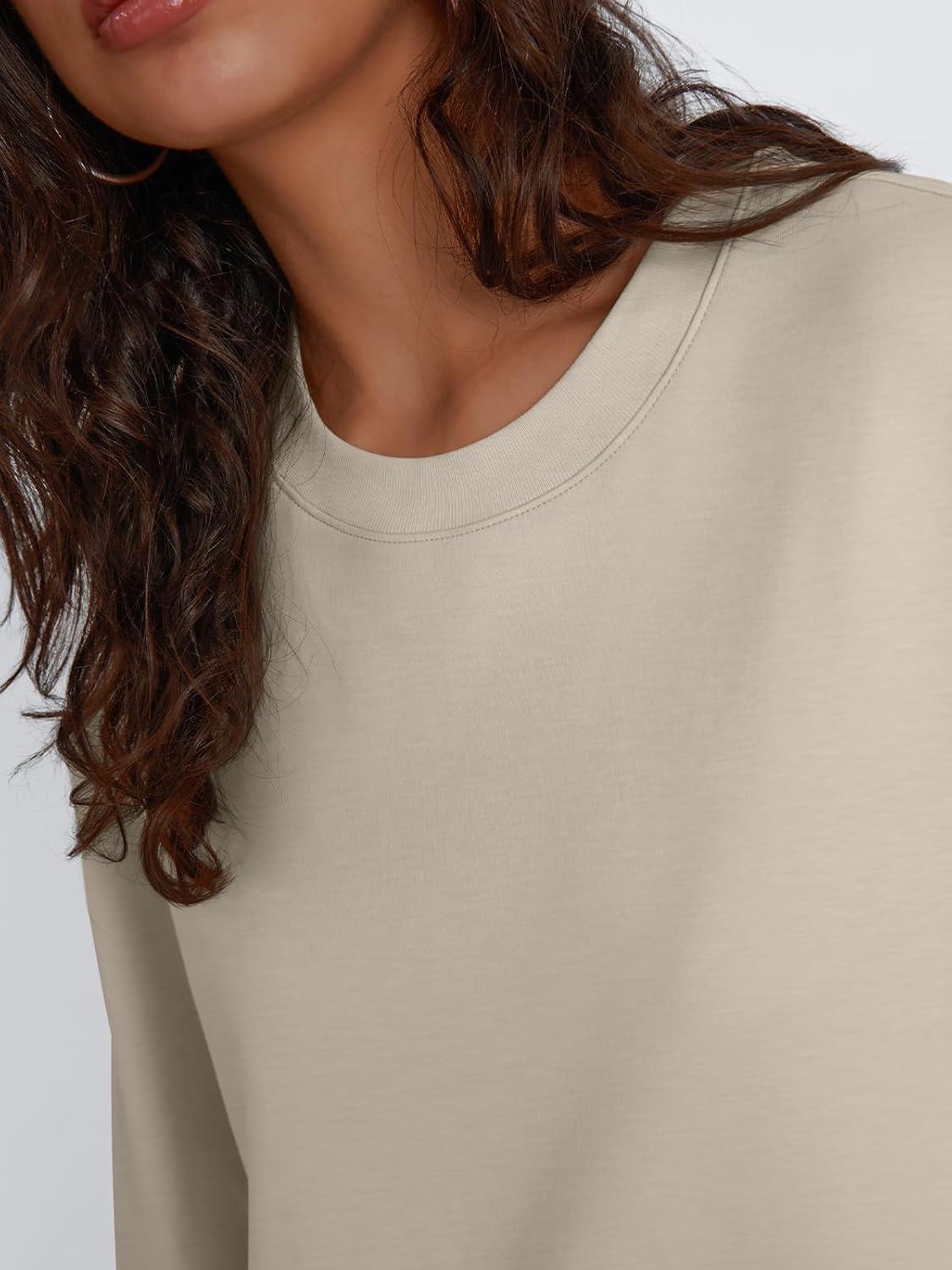 imageTrendy Queen Womens Oversized T Shirts Long Sleeve Shirts Casual Fall Fashion 2025 Winter ClothesBeige