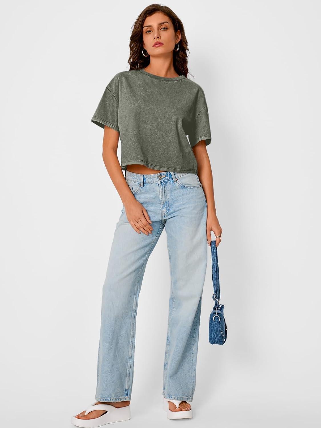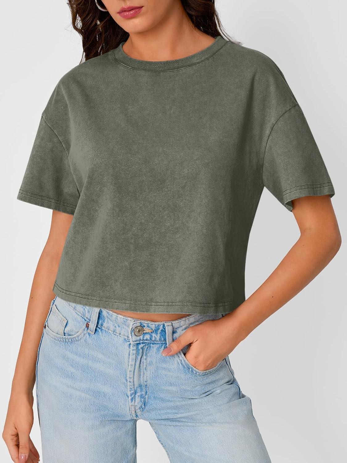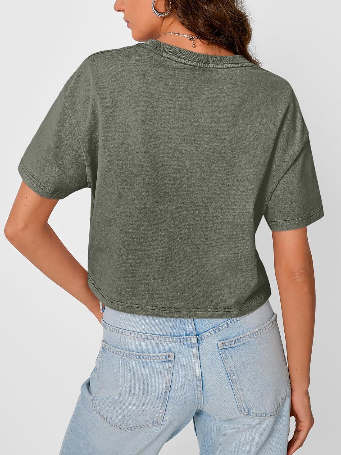 Trendy Queen Women's Short Sleeve Crop T-Shirt(Greygreen)