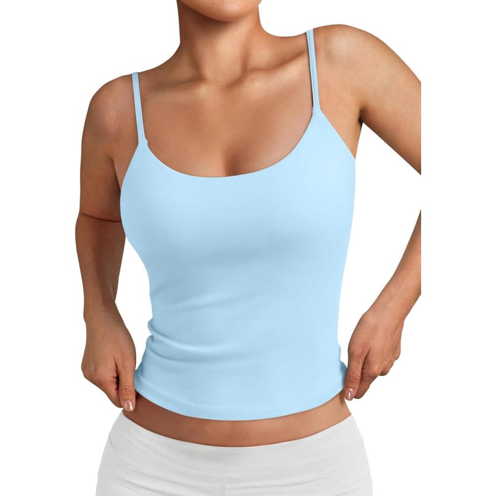 Trendy Queen Womens Spaghetti Strap Tank Top Summer Double Lined Workout Camisole Going Out Cute Tops Y2k Teen Girl Basic(Lightblue)
