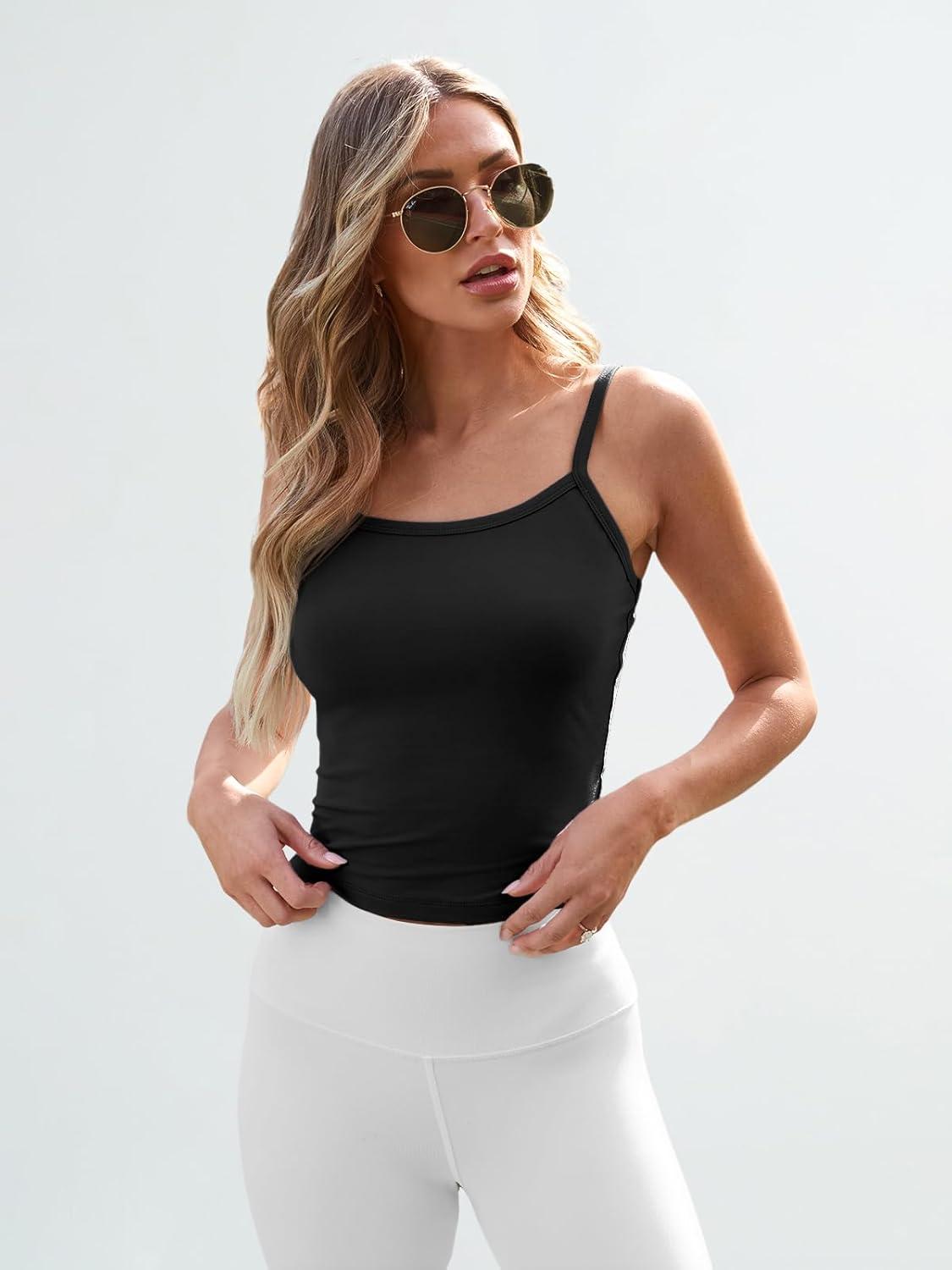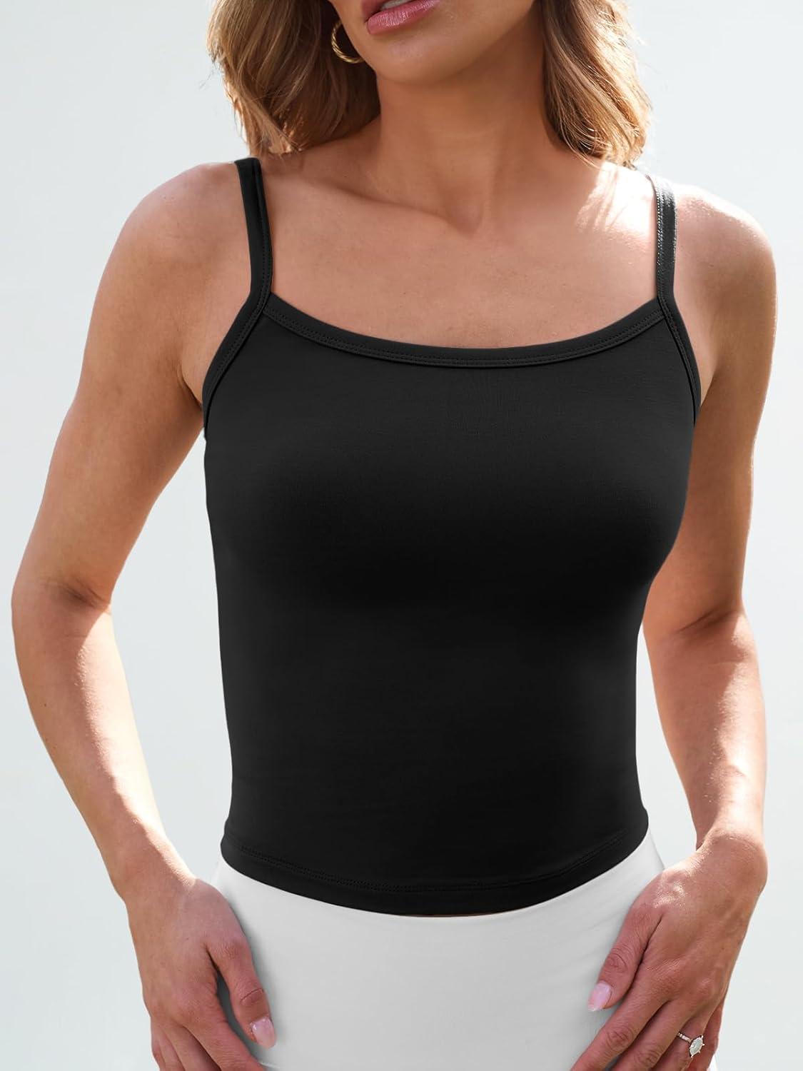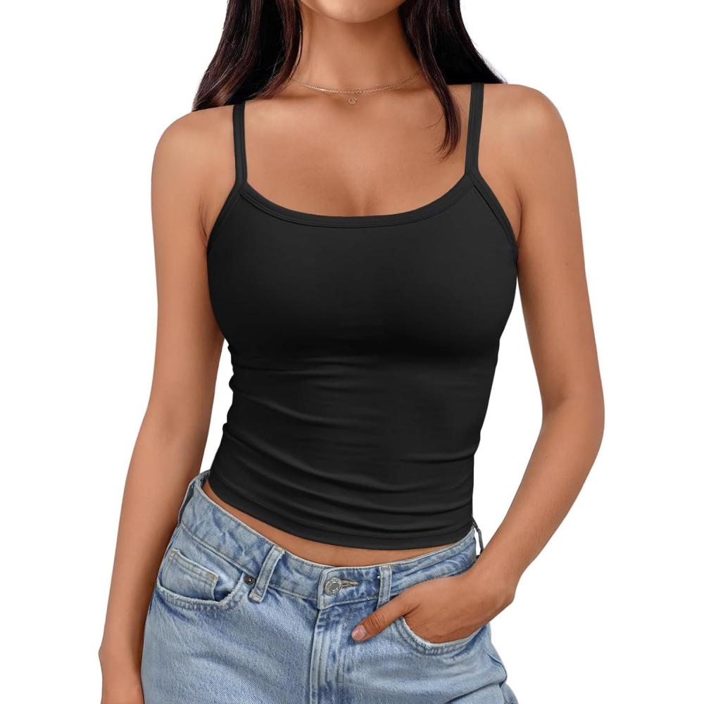 Trendy Queen Womens Spaghetti Strap Tank Tops Adjustable Cute Camisole Going Out Crop Tops Summer Clothes(Black)