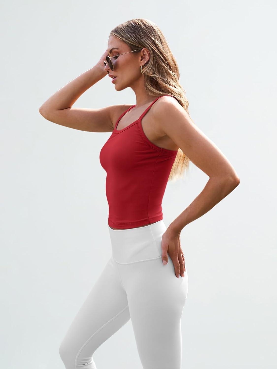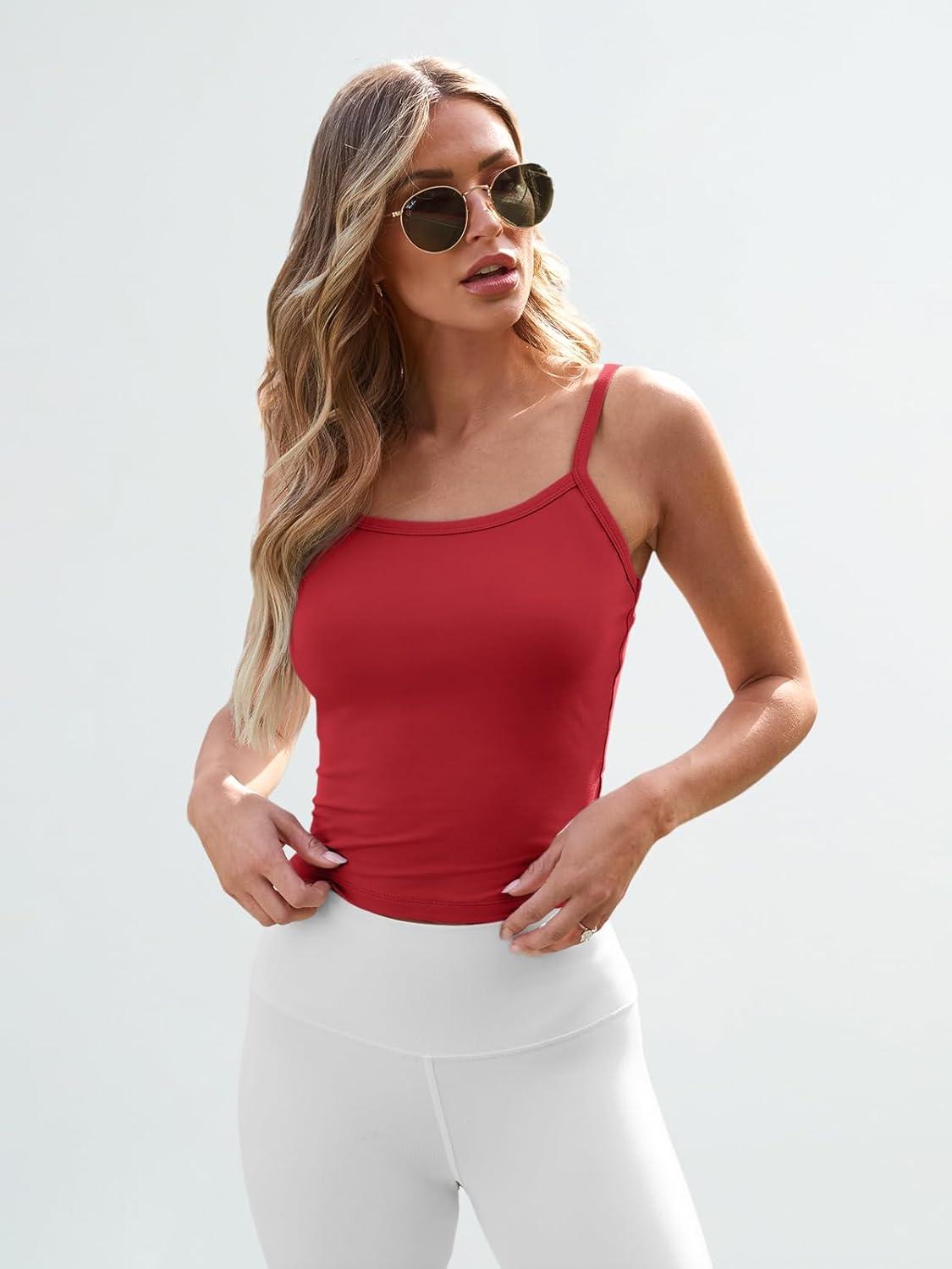 Trendy Queen Womens Spaghetti Strap Tank Tops Adjustable Cute Camisole Going Out Crop Tops Summer Clothes(Red)