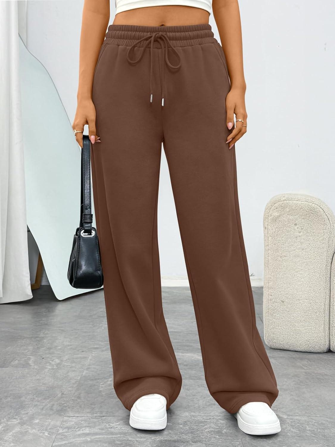 Trendy Queen Womens Sweatpants Baggy Wide Leg Barrel Pants Lounge Comfy Palazzo Joggers with Pockets(Coffee)