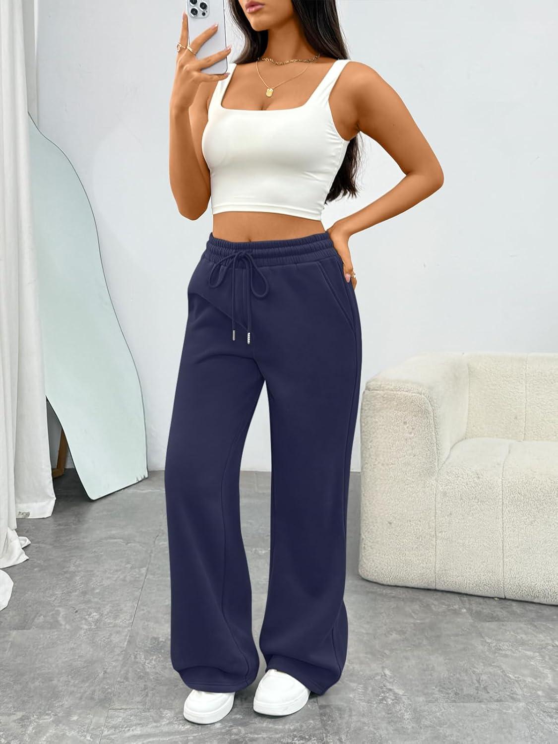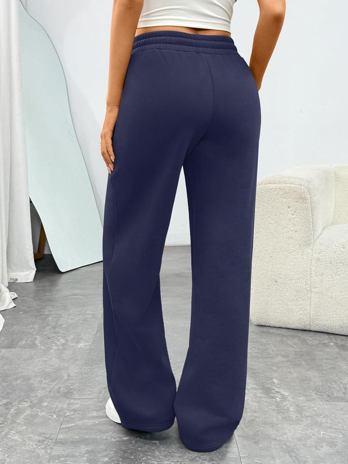 Trendy Queen Womens Sweatpants Baggy Wide Leg Barrel Pants Lounge Comfy Palazzo Joggers with Pockets(Navy)