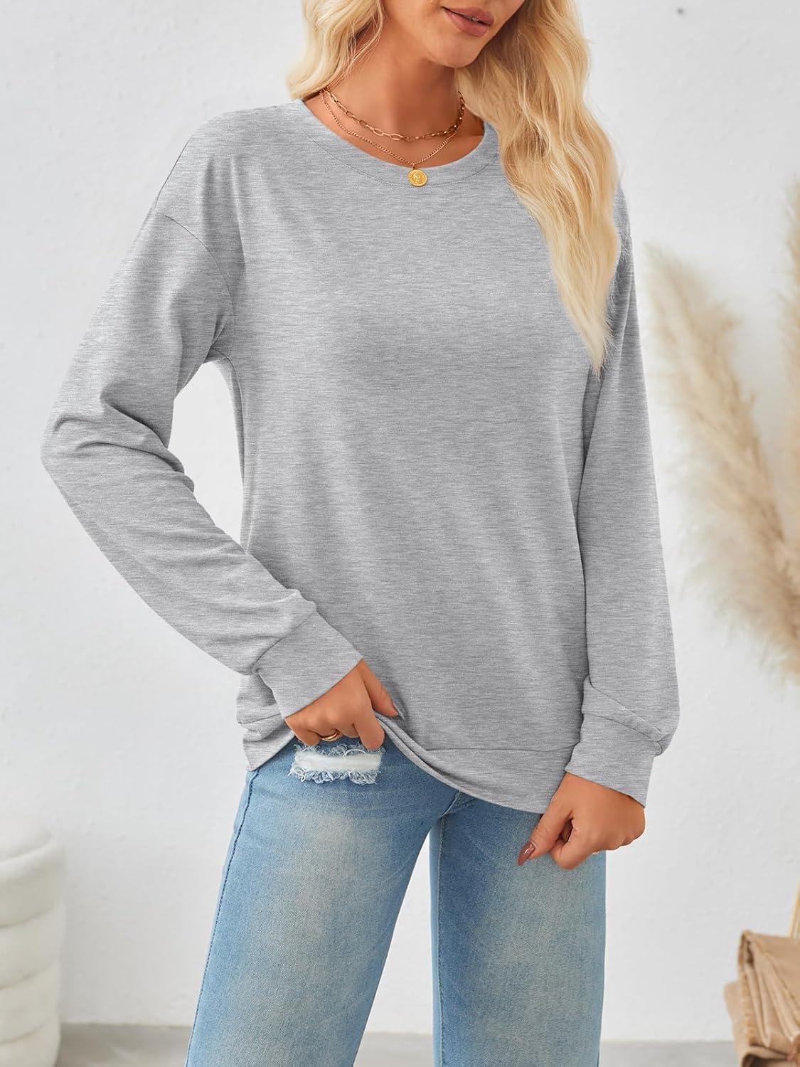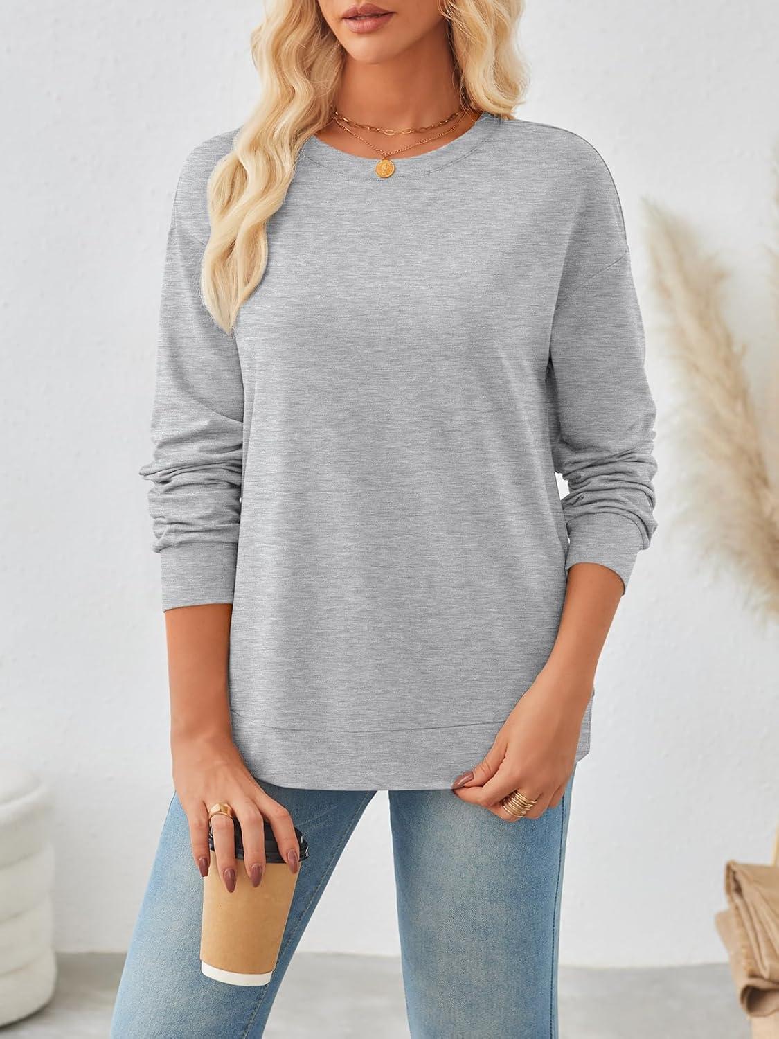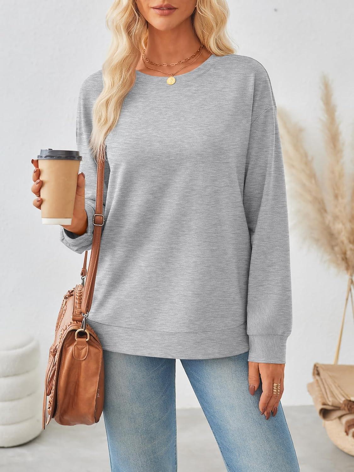 Trendy Queen Womens Sweatshirts Crewneck Hoodies Casual Sweaters Long Sleeve Tops Fall Fashion Outfits Winter Clothes 2025(Grey)