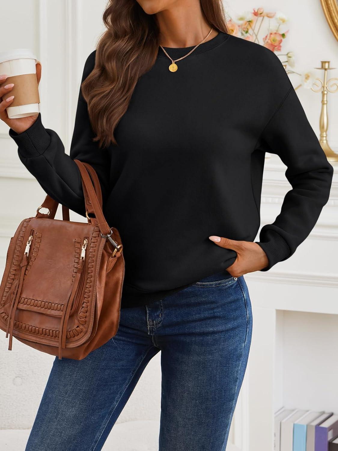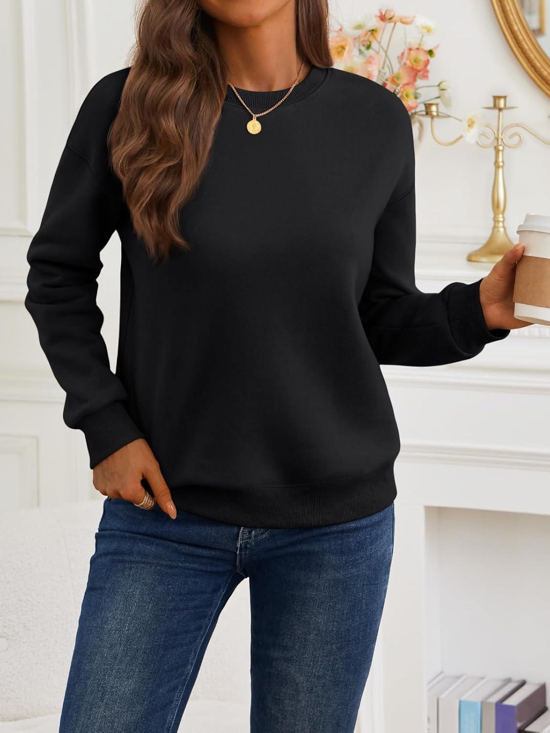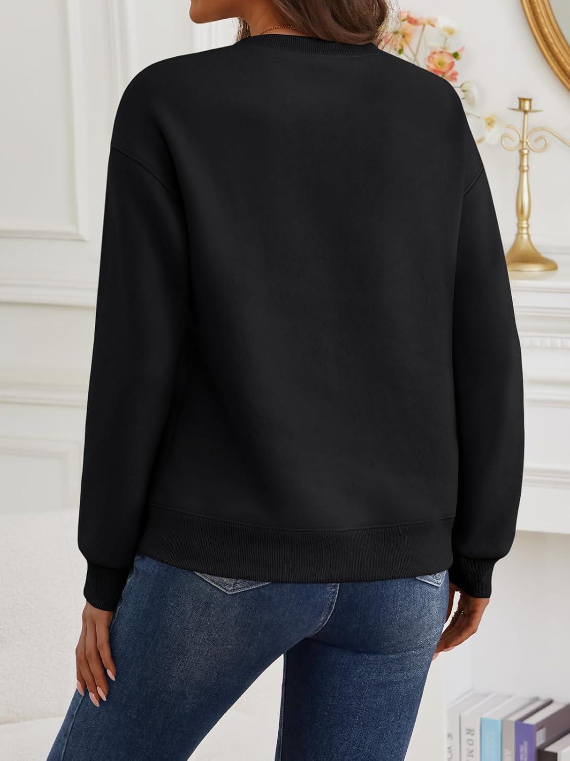Trendy Queen Womens Sweatshirts Crewneck Pullover Hoodies Casual Tops Sweaters Fall Winter Outfits 2025 Comfy Fashion Clothes(Black)