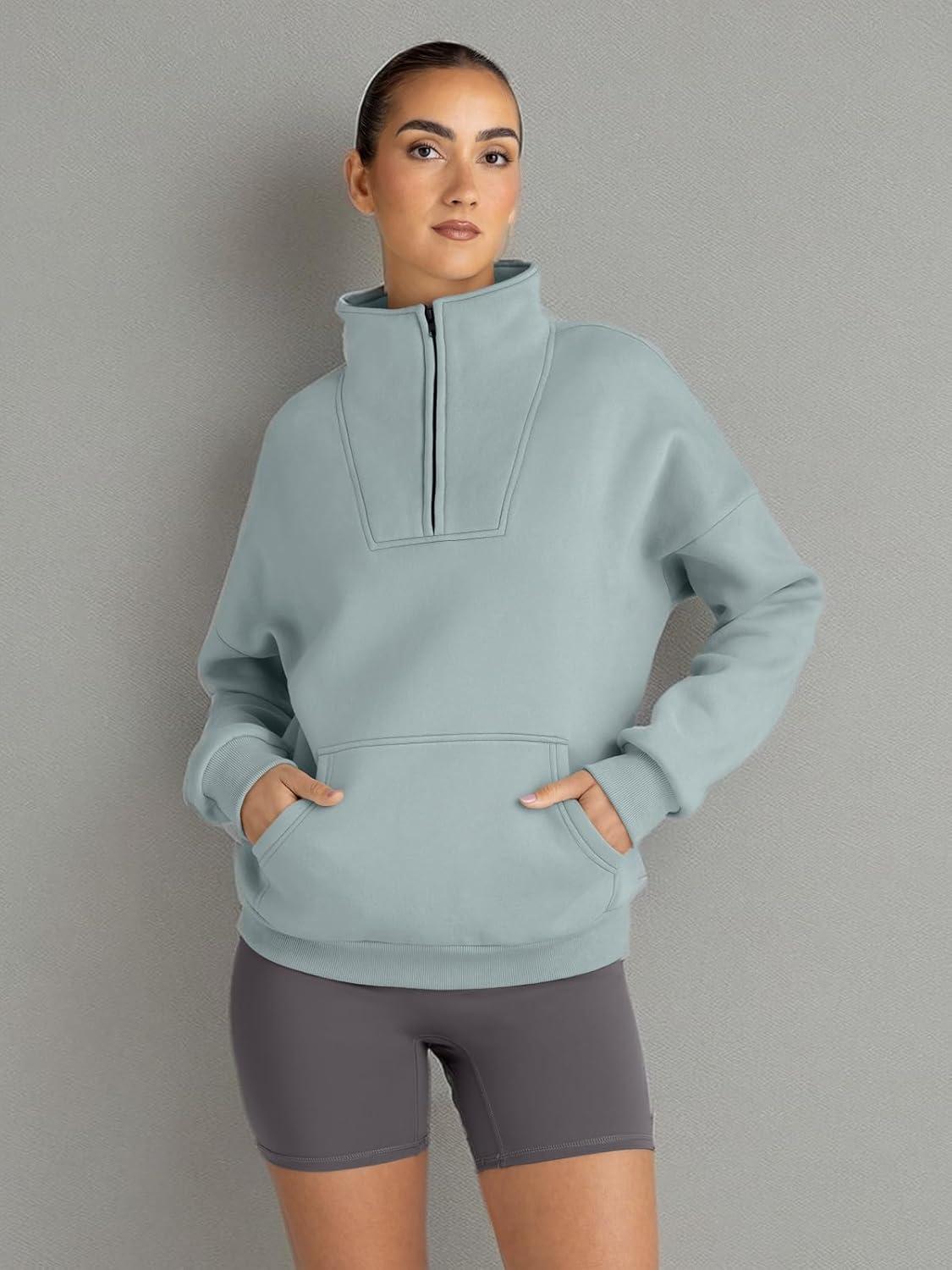 Trendy Queen Womens Sweatshirts Quarter Half Zip Pullover Fall Fashion Outfits 2025 Oversized Hoodies Comfy Winter Clothes(Lightblue)