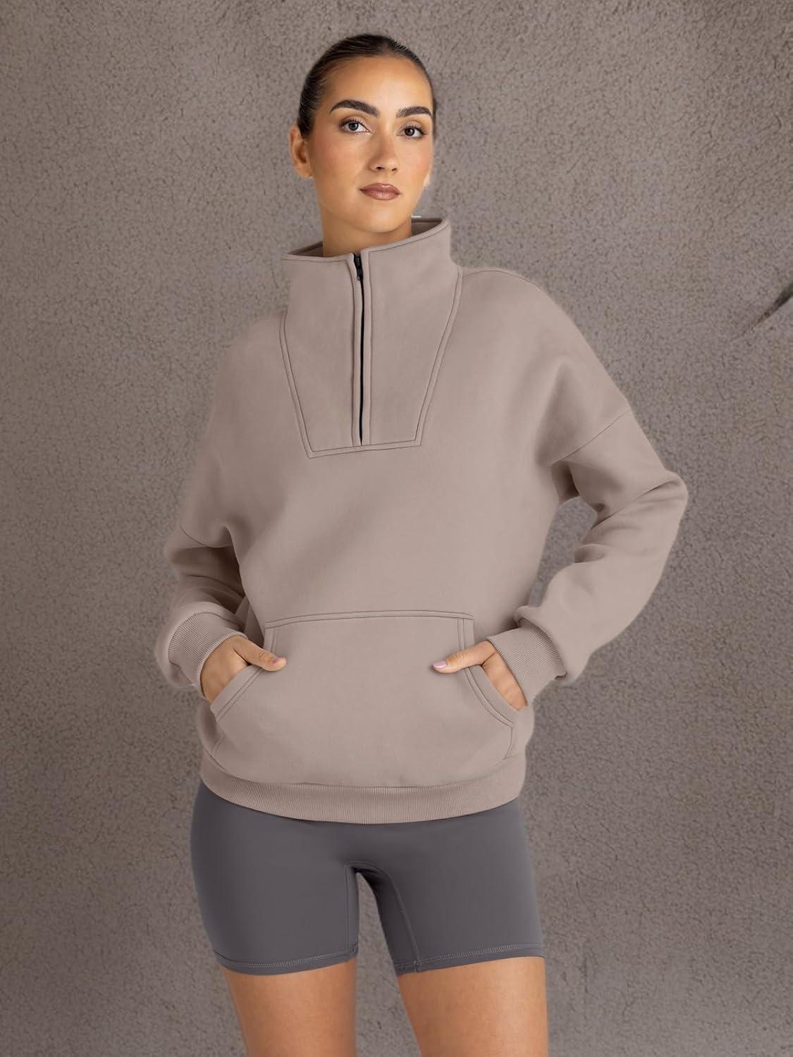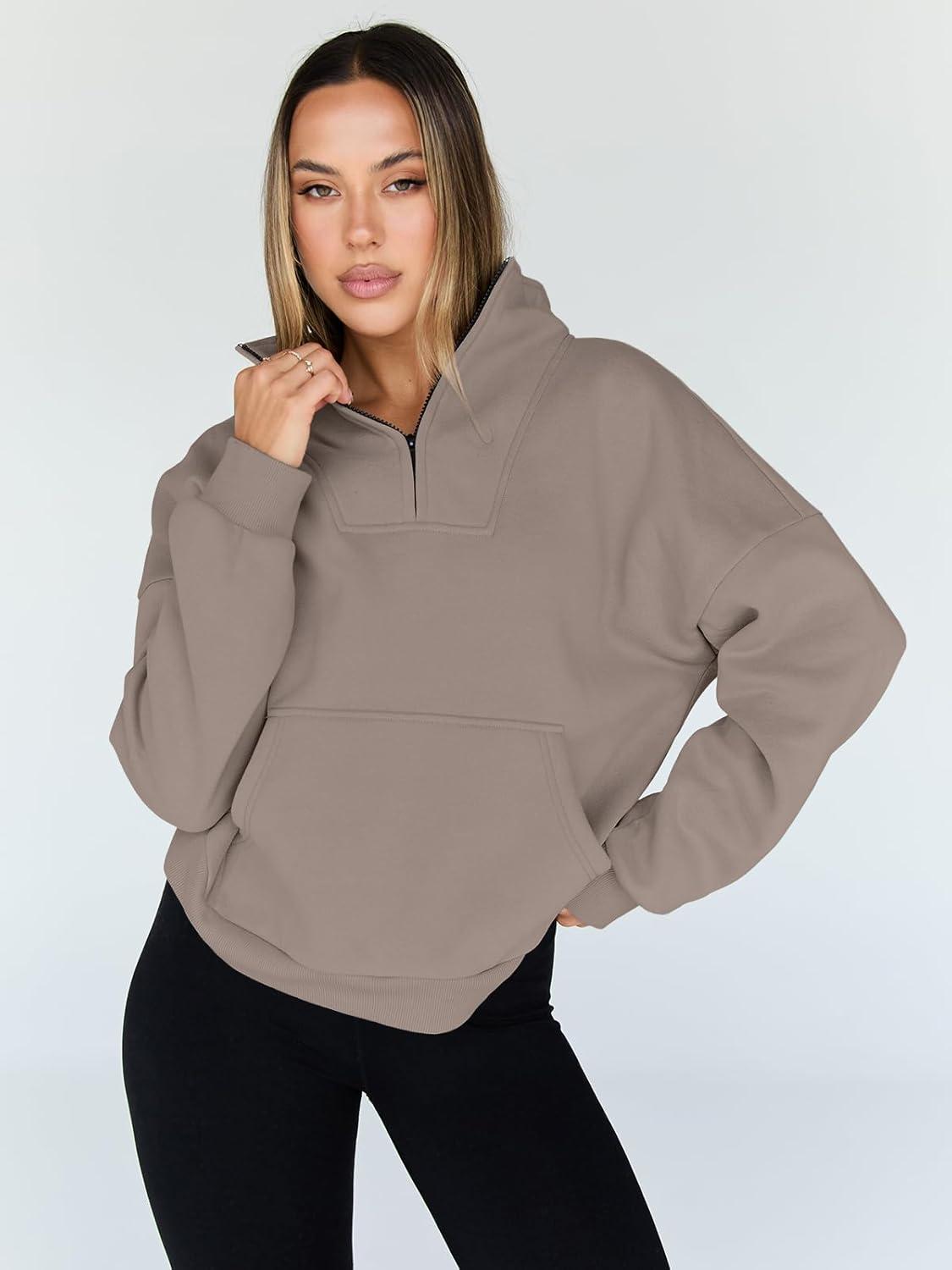Trendy Queen Womens Sweatshirts Quarter Half Zip Pullover Oversized Hoodies Fall Fashion 2025 Winter Fleece Jackets Sweaters(Coffee Grey)