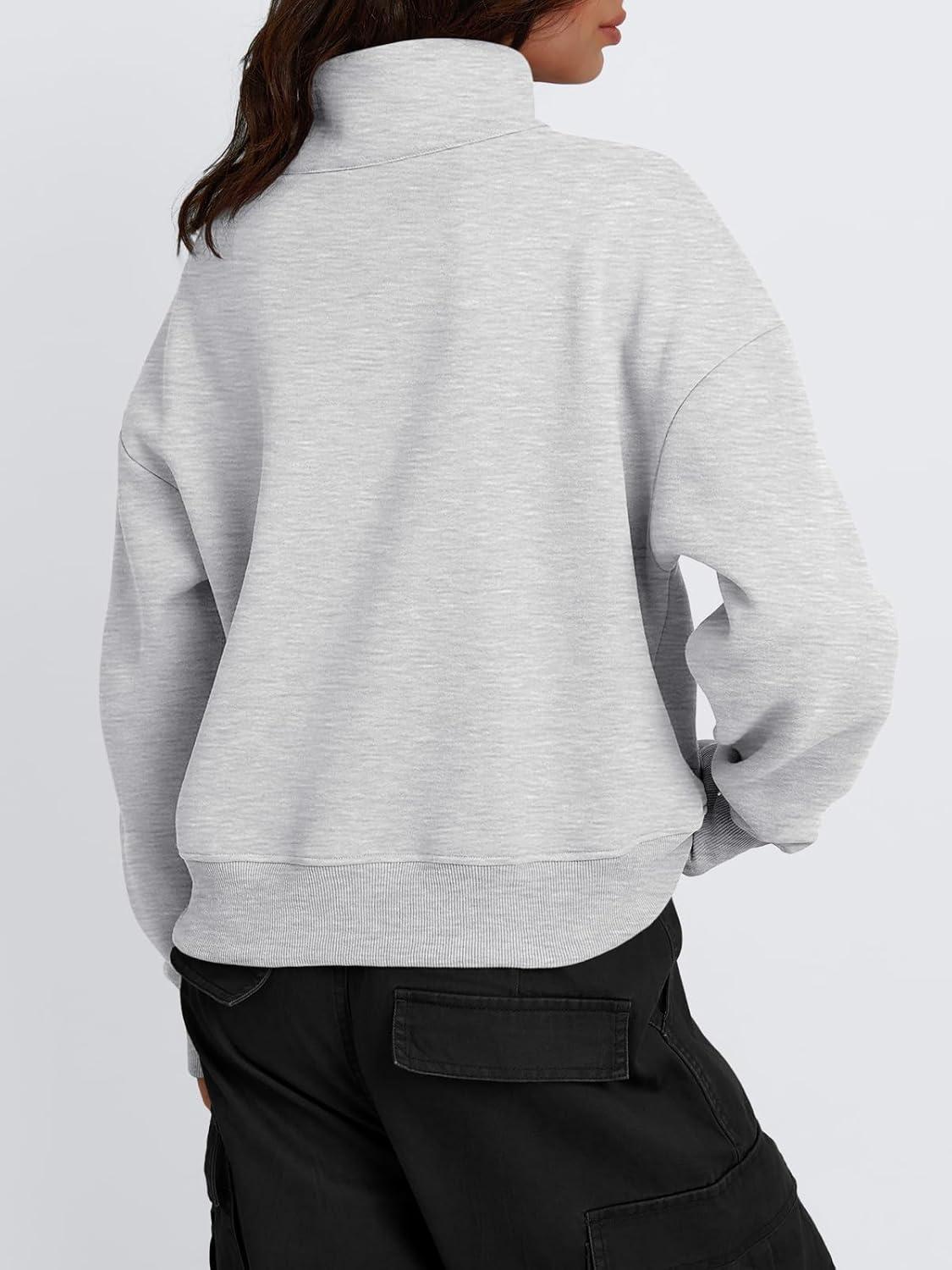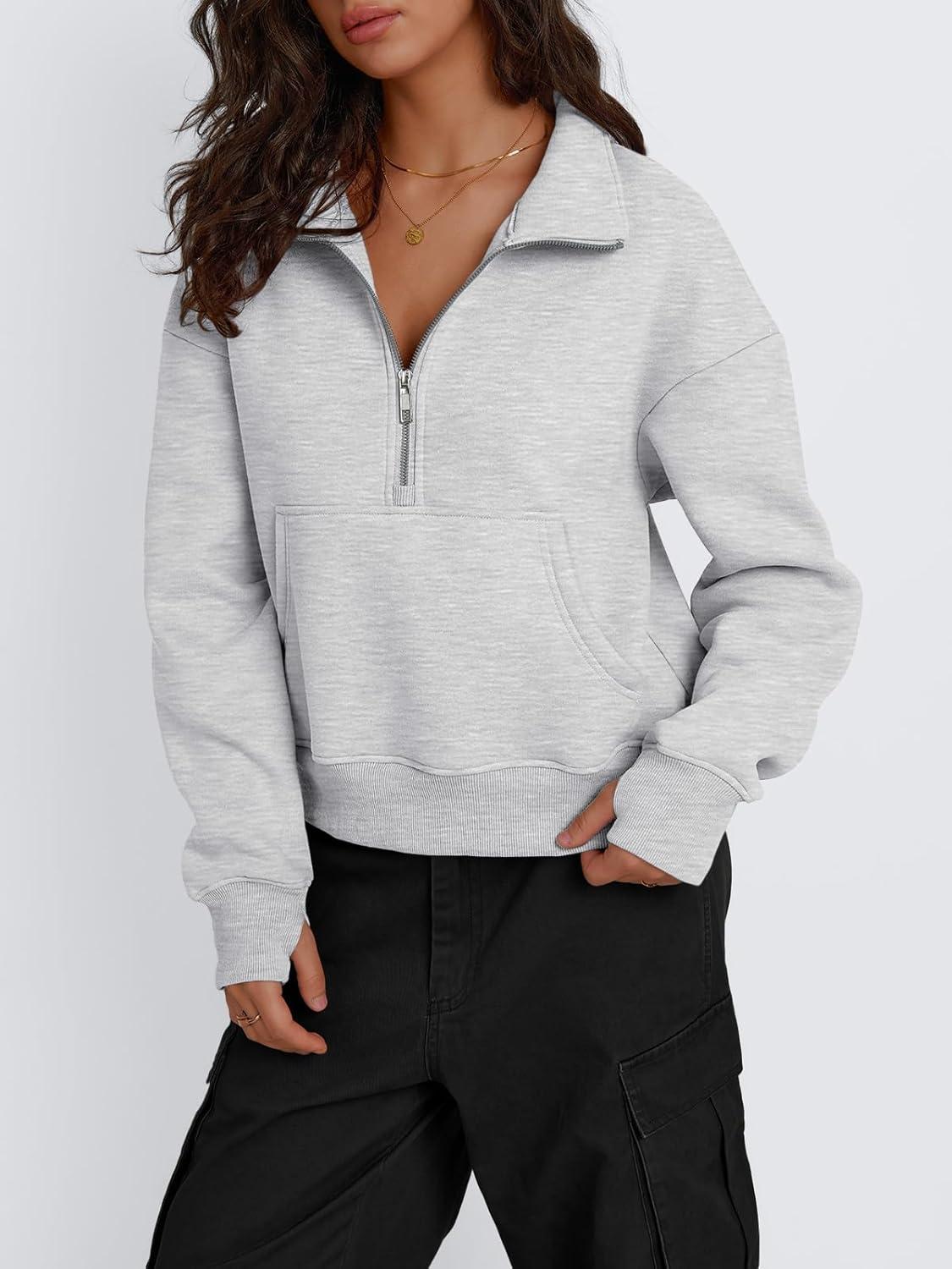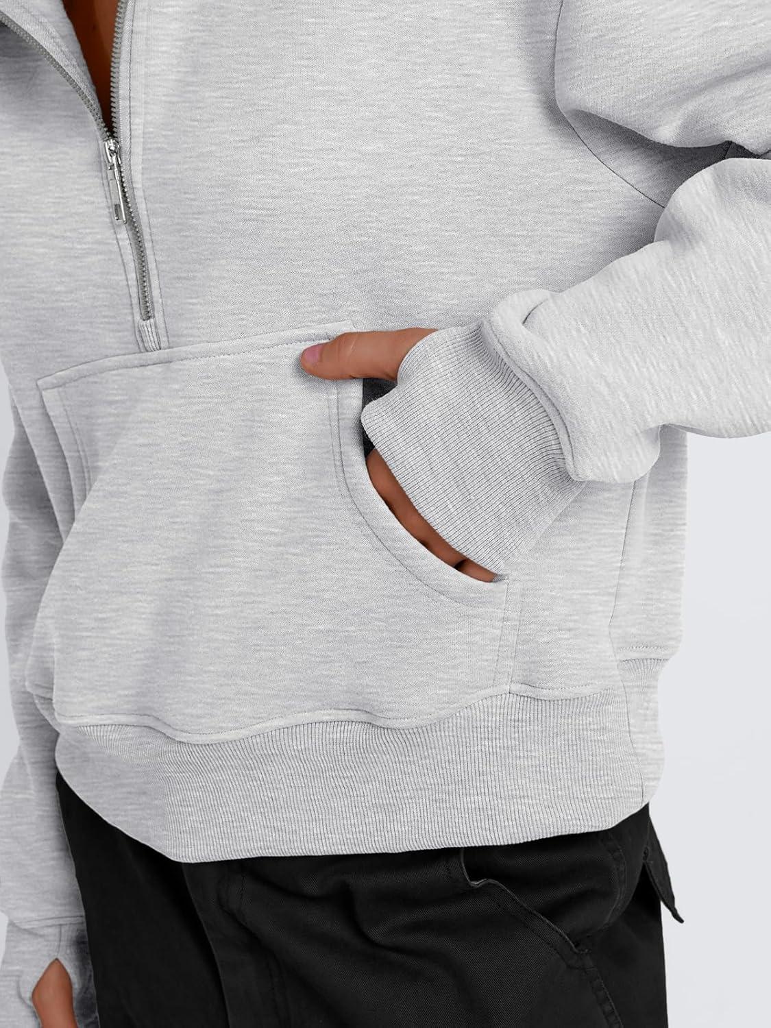 Trendy Queen Womens Sweatshirts Quarter Zip Pullover Oversized Cropped Sweater Fall Winter Hoodies(Grey)