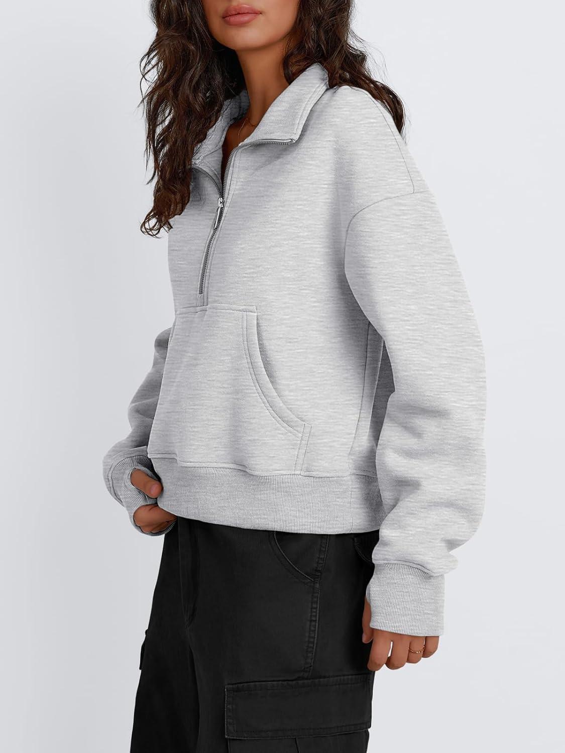 imageTrendy Queen Womens Sweatshirts Quarter Zip Pullover Oversized Cropped Sweater Fall Winter HoodiesGrey