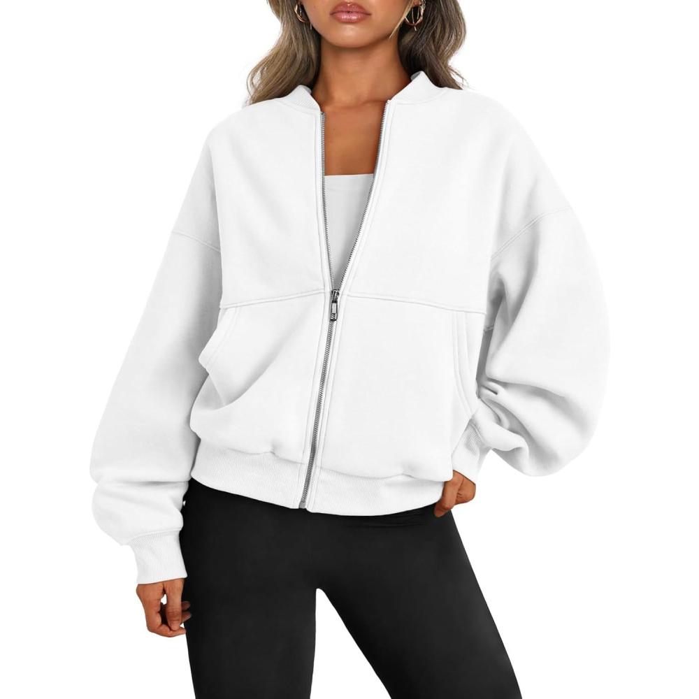 Trendy Queen Womens Sweatshirts Zip Up Jackets Hoodies Oversized Gym Tops Casual Fall Outfits Y2k Fashion Winter Clothes 2025(White)