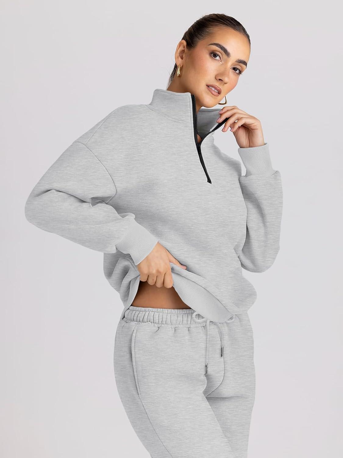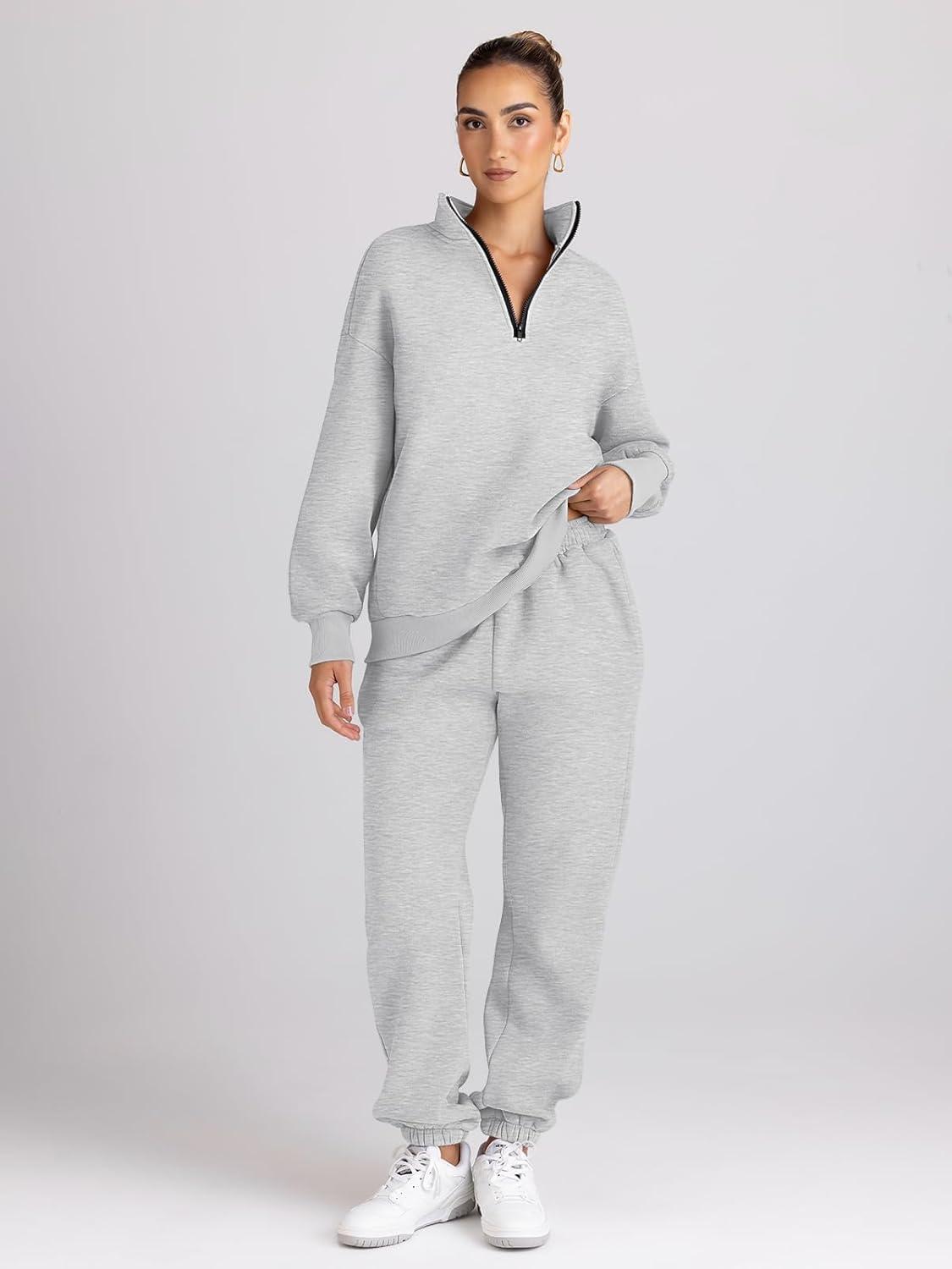 Don’t miss out on our limited-time offer: get a free {accessory} with your purchase of Trendy Queen Womens Sweatsuits 2 Piece Outfits Fall Lounge Sweat Sets Half Zip Sweatshirts with Baggy Sweatpants(Grey).
