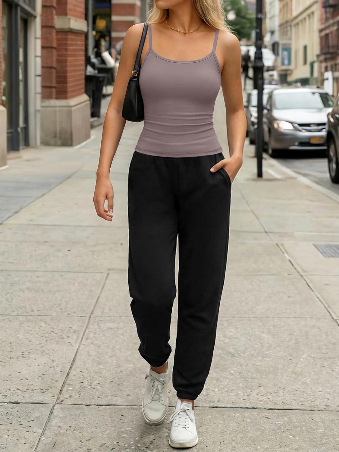 imageTrendy Queen Womens Tank Tops Camisole Sleeveless Tops Adjustable Spaghetti Straps Basic Going Out Slim Fitted ClothesWhite