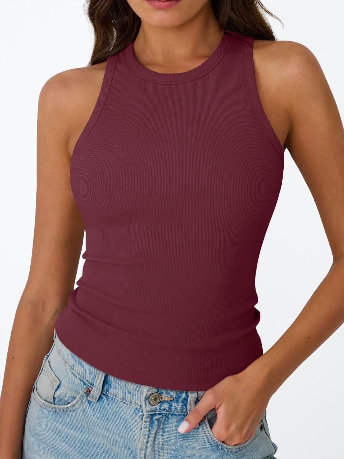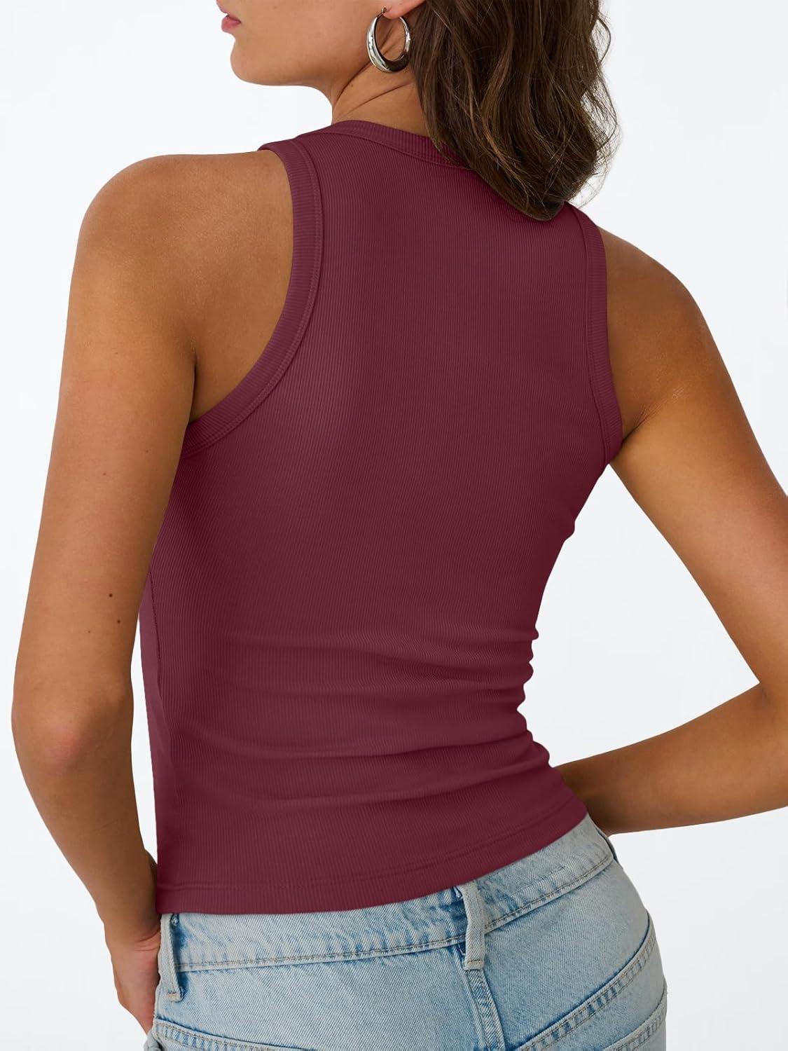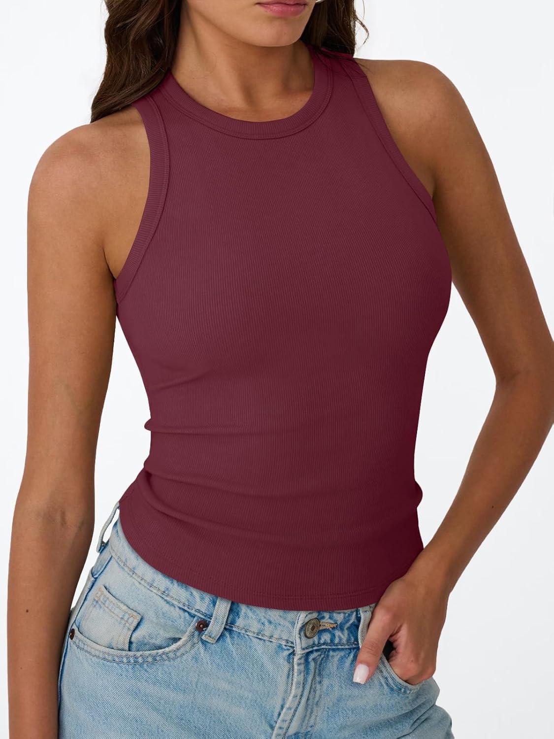 Trendy Queen Womens Tank Tops Summer Workout Racerback Ribbed Shirts Beach Vacation Outfits Spring Fashion Y2k Clothes(Red)