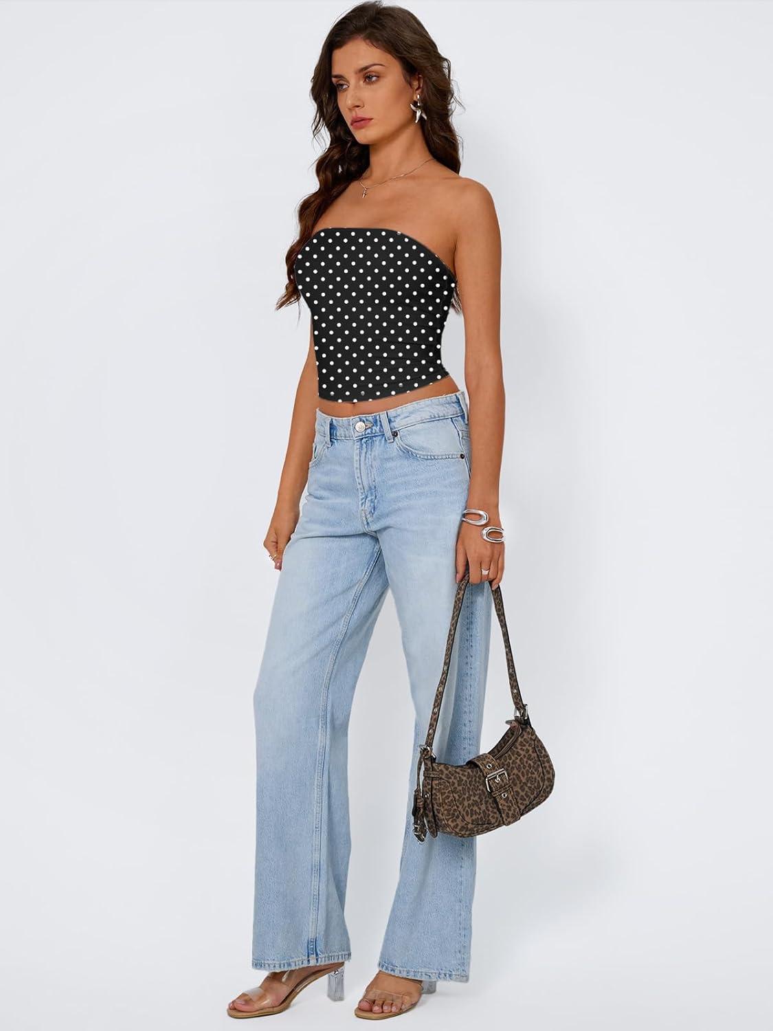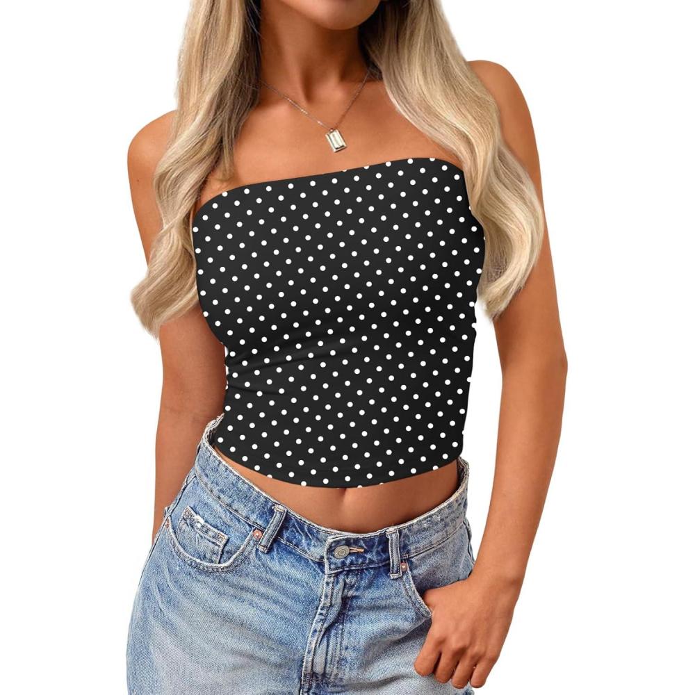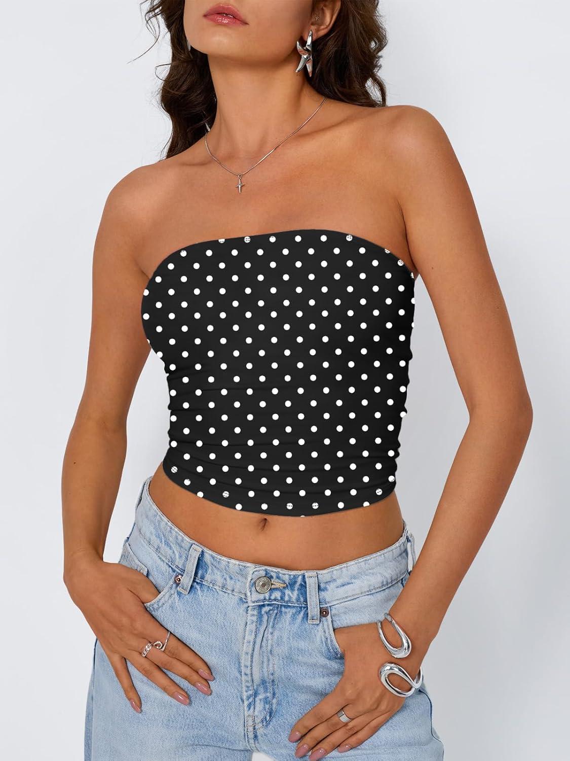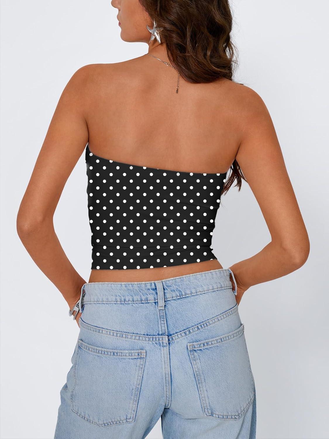 Trendy Queen Womens Tube Tops Going Out Summer Y2k Bandeau Trendy Crop Sleeveless Strapless Cute Teens 2026 Corset Floral(Black Polka Dots)